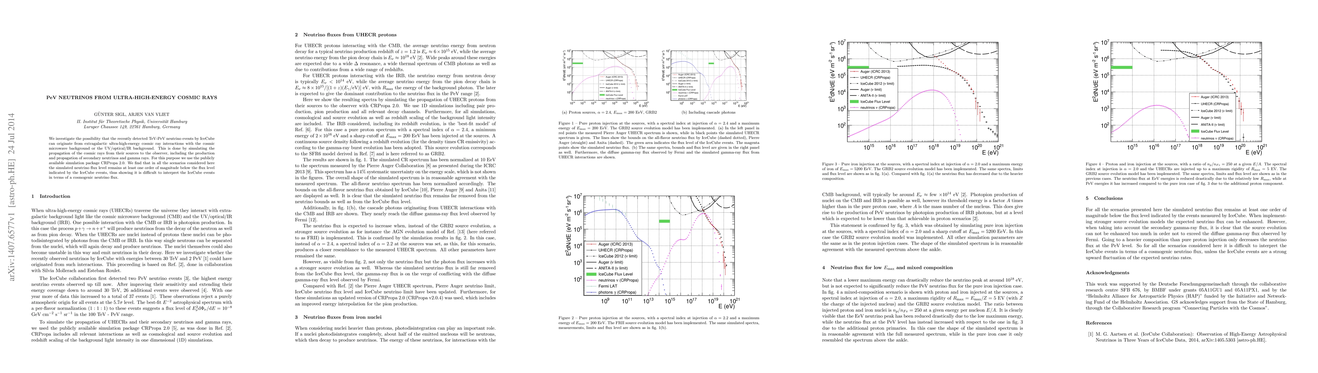 This study explores the origin of TeV-PeV neutrinos detected by IceCube, suggesting they could stem from ultra-high-energy cosmic ray interactions with cosmic backgrounds. Using CRPropa 2.0, simulations show that the predicted neutrino flux is an order of magnitude lower than observed, indicating that these neutrinos likely do not originate from cosmogenic sources.