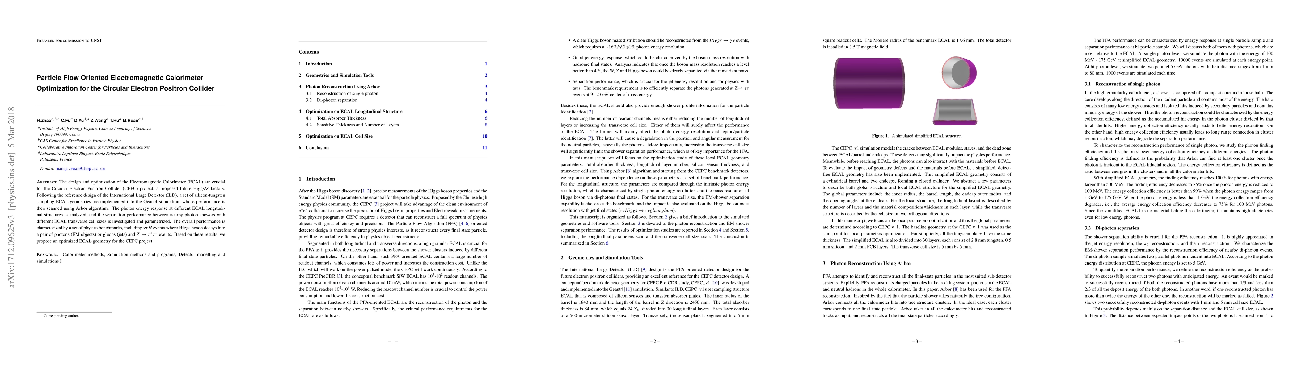 This paper optimizes the Electromagnetic Calorimeter (ECAL) for the CEPC project using Geant4 simulations and the Arbor algorithm, focusing on silicon-tungsten sampling geometries. The study evaluates performance through various benchmarks, ultimately proposing an improved ECAL design for the CEPC Higgs/Z factory.