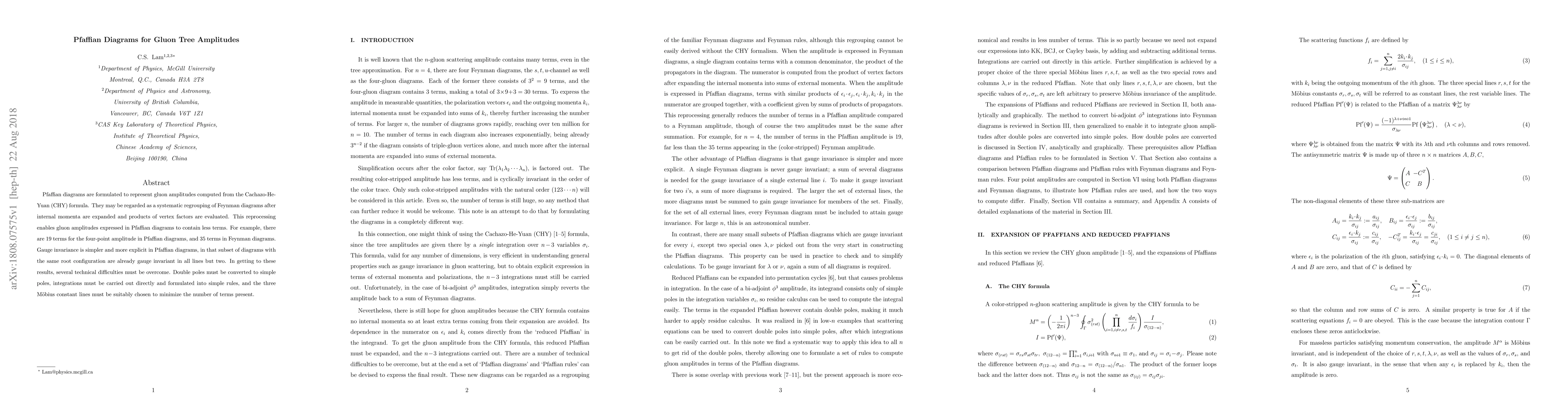 This paper introduces Pfaffian diagrams as a method to represent gluon tree amplitudes derived from the Cachazo-He-Yuan formula, showing that they simplify gauge invariance and reduce the number of terms compared to Feynman diagrams. The authors address technical challenges to achieve these results, including converting double poles to simple poles and minimizing the number of terms through careful choice of integration constants.