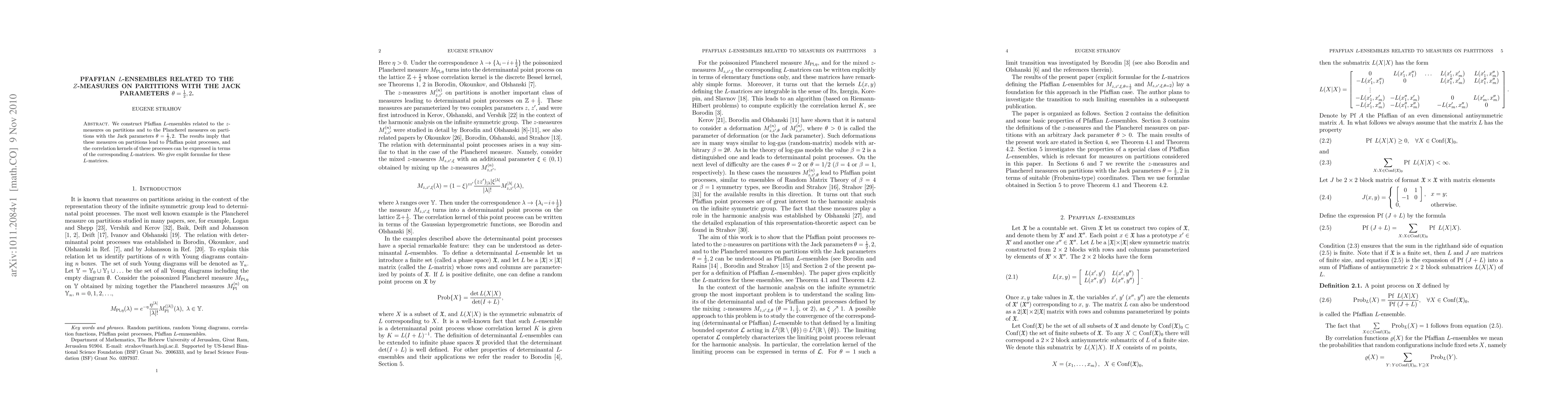 This paper constructs Pfaffian L-ensembles linked to z-measures on partitions with Jack parameters 1/2 or 2, showing these measures generate Pfaffian point processes with correlation kernels expressed via corresponding L-matrices, providing explicit formulae for these L-matrices.