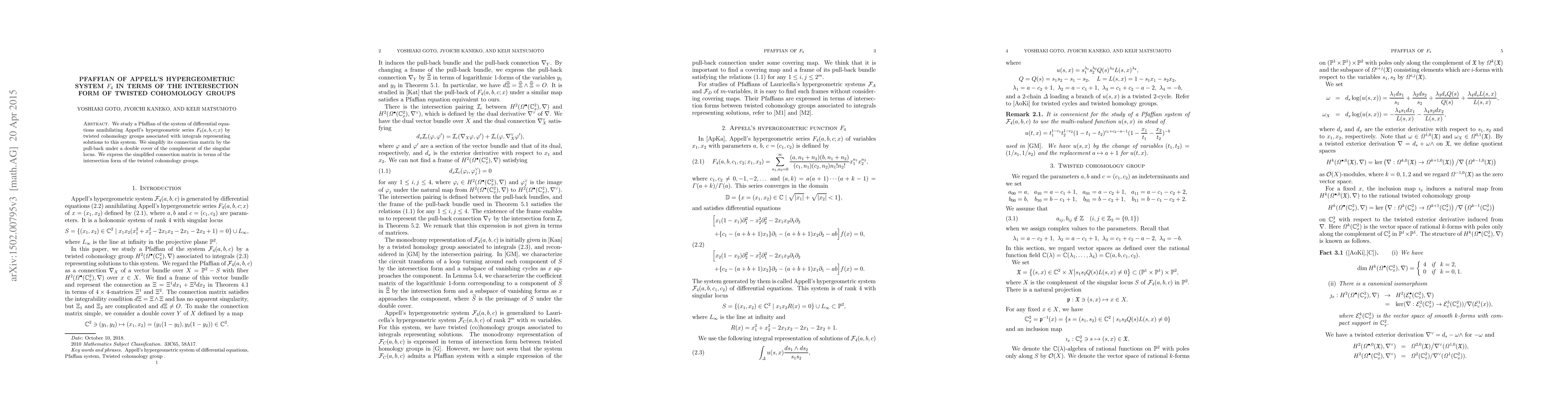 This paper explores the Pfaffian of Appell's hypergeometric system $F_4$ and relates it to the intersection form of twisted cohomology groups. It simplifies the connection matrix via a double cover and expresses the result in terms of these twisted cohomology groups.
