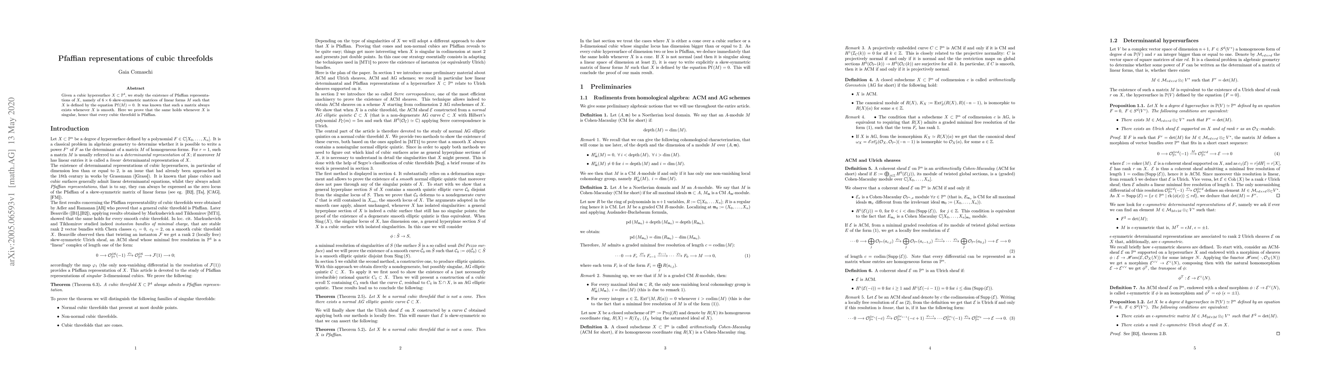 This paper shows that every cubic threefold can be represented as a Pfaffian matrix, meaning a specific type of 6x6 skew-symmetric matrix, even when the surface is singular.