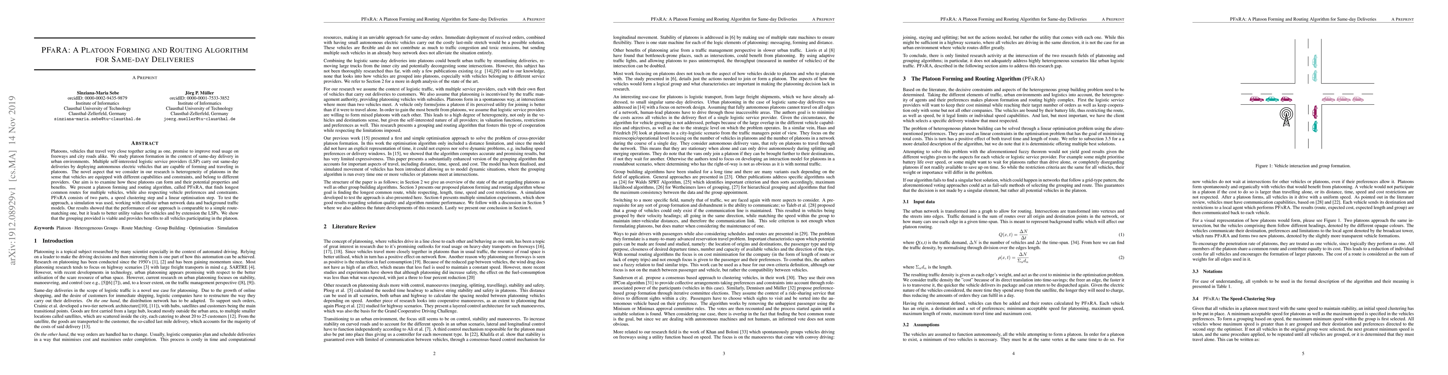 The PFaRA algorithm enables heterogeneous autonomous vehicles from different logistic service providers to form platoons and find optimal routes in urban environments, demonstrating improved utility values and benefits for participating vehicles compared to simple route-matching methods. Simulation results indicate the viability and advantages of platoon formation in same-day delivery logistics.