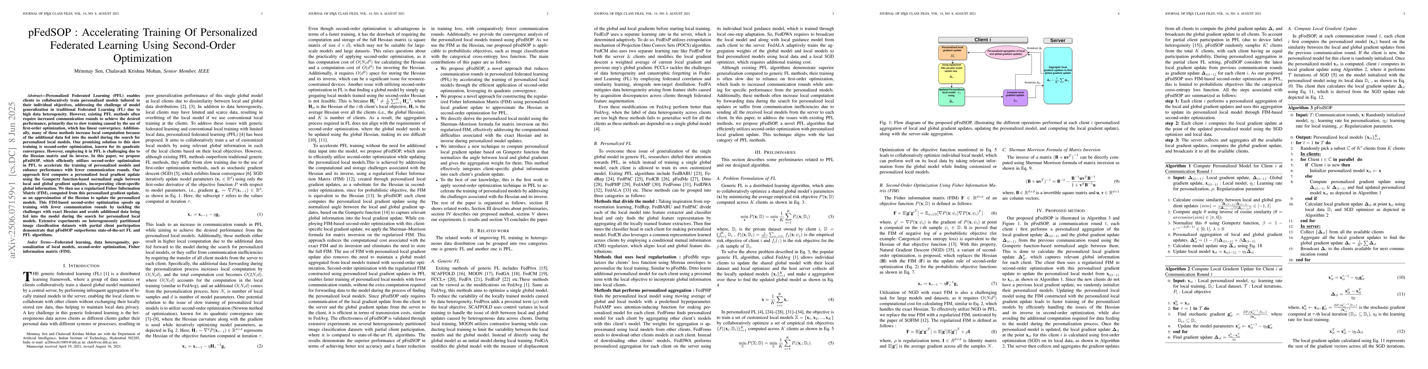 Personalized Federated Learning (PFL) enables clients to collaboratively train personalized models tailored to their individual objectives, addressing the challenge of model generalization in traditional Federated Learning (FL) due to high data heterogeneity. However, existing PFL methods often require increased communication rounds to achieve the desired performance, primarily due to slow training caused by the use of first-order optimization, which has linear convergence. Additionally, many of these methods increase local computation because of the additional data fed into the model during the search for personalized local models. One promising solution to this slow training is second-order optimization, known for its quadratic convergence. However, employing it in PFL is challenging due to the Hessian matrix and its inverse. In this paper, we propose pFedSOP, which efficiently utilizes second-order optimization in PFL to accelerate the training of personalized models and enhance performance with fewer communication rounds. Our approach first computes a personalized local gradient update using the Gompertz function-based normalized angle between local and global gradient updates, incorporating client-specific global information. We then use a regularized Fisher Information Matrix (FIM), computed from this personalized gradient update, as an approximation of the Hessian to update the personalized models. This FIM-based second-order optimization speeds up training with fewer communication rounds by tackling the challenges with exact Hessian and avoids additional data being fed into the model during the search for personalized local models. Extensive experiments on heterogeneously partitioned image classification datasets with partial client participation demonstrate that pFedSOP outperforms state-of-the-art FL and PFL algorithms.