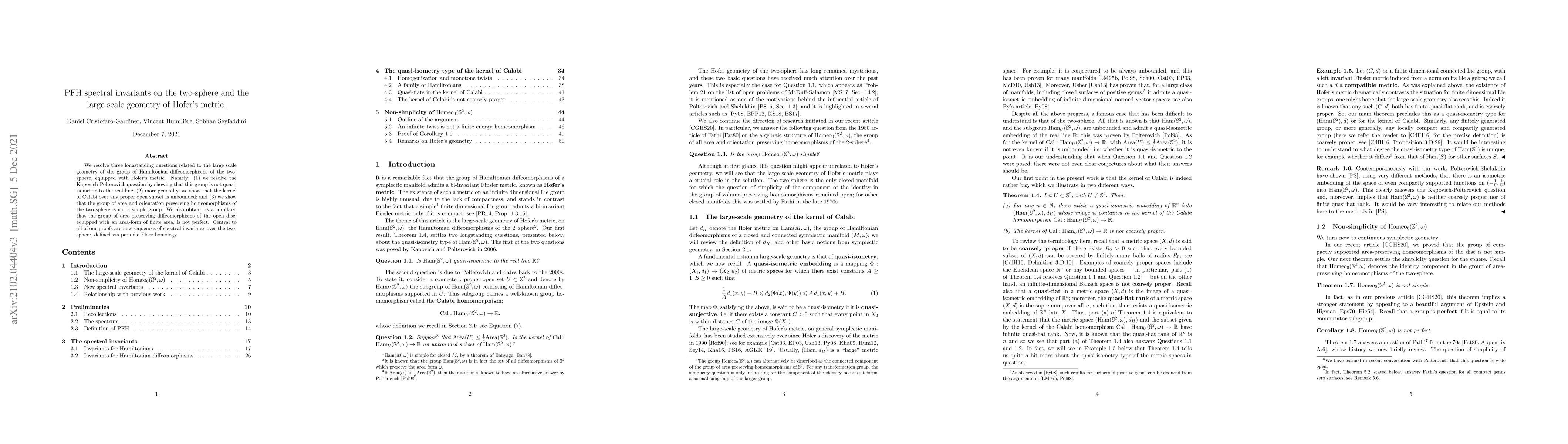 Researchers resolve three questions about the large-scale geometry of Hamiltonian diffeomorphisms on the two-sphere, showing that the group is not quasi-isometric to the real line and has unbounded kernel Calabi.