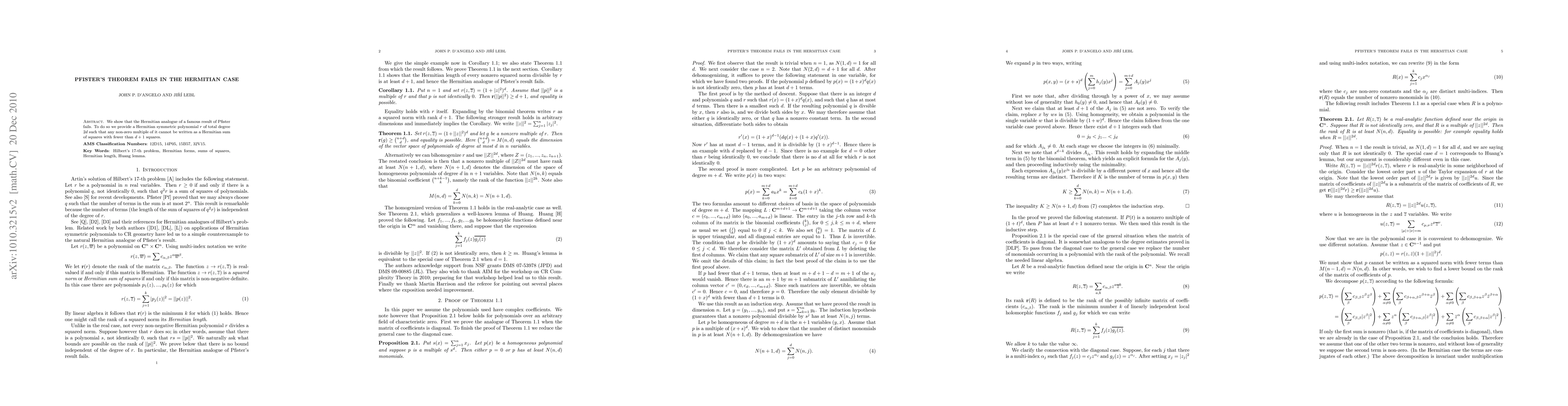 Researchers show that a famous result in Hermitian symmetric polynomials fails, providing a counterexample to Pfister's theorem. They find a specific polynomial with limited expressible sums of squares.