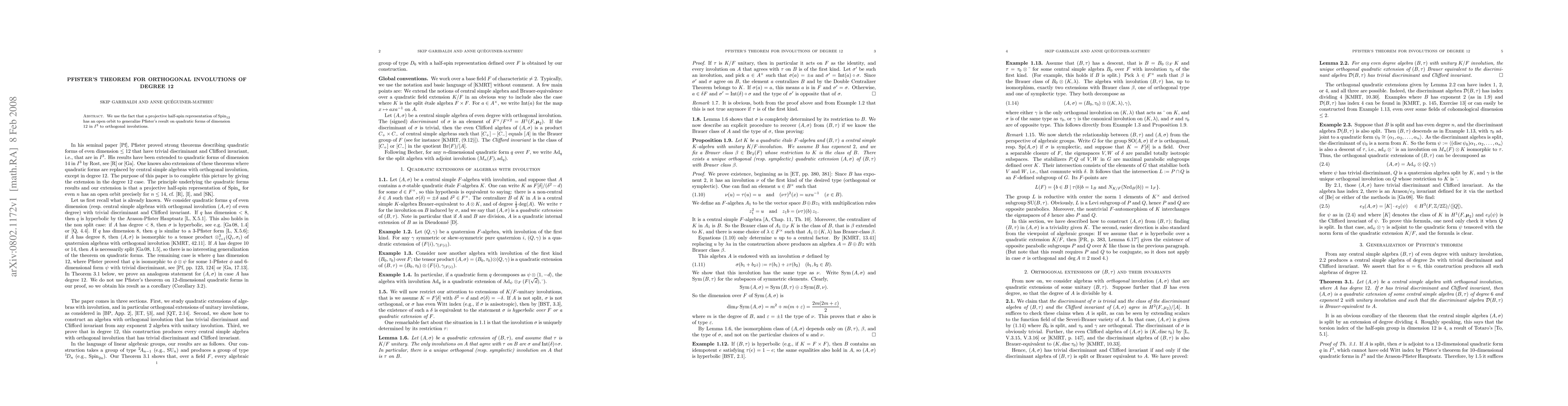 We use the fact that a projective half-spin representation of $Spin_{12}$ has an open orbit to generalize Pfister's result on quadratic forms of dimension 12 in $I^3$ to orthogonal involutions.