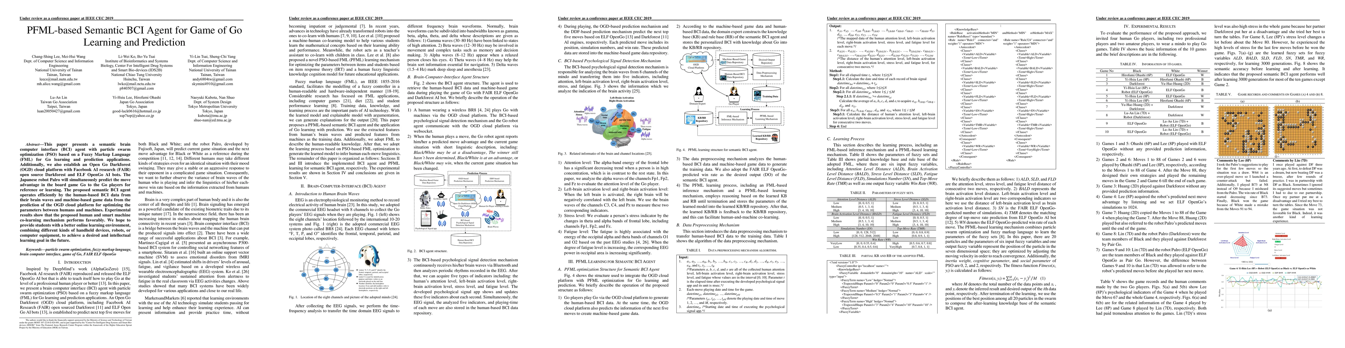 This paper introduces a semantic brain-computer interface (BCI) agent using particle swarm optimization and Fuzzy Markup Language for Go learning and prediction, leveraging an Open Go Darkforest cloud platform. The agent combines human brain wave data with machine predictions to optimize learning, demonstrating favorable outcomes in co-learning with humans and machines.