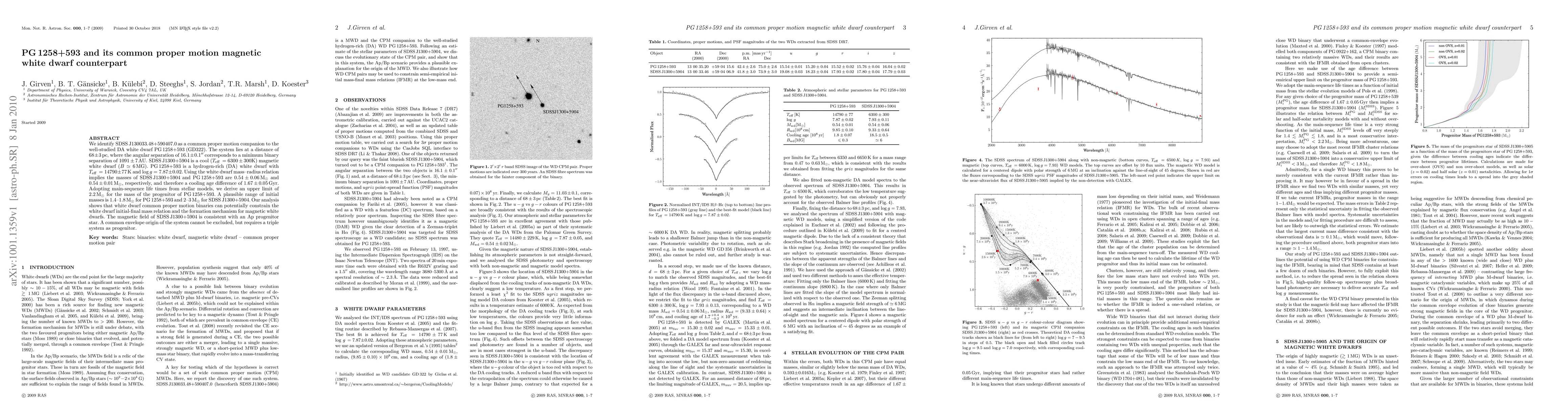 We identify SDSS J130033.48+590407.0 as a common proper motion companion to the well-studied DA white dwarf PG 1258+593 (GD322). The system lies at a distance of 68 +/- 3 pc, where the angular separation of 16.1 +/- 0.1 arcsec corresponds to a minimum binary separation of 1091 +/- 7 AU. SDSS J1300+5904 is a cool (Teff = 6300 +/- 300K) magnetic white dwarf (B ~ 6 MG). PG 1258+593 is a hydrogen-rich (DA) white dwarf with Teff=14790 +/- 77 K and log(g) = 7.87 +/- 0.02. Using the white dwarf mass-radius relation implies the masses of SDSS J1300+5904 and PG 1258+593 are 0.54 +/- 0.06 Msun and 0.54 +/- 0.01 Msun, respectively, and therefore a cooling age difference of 1.67 +/- 0.05 Gyr. Adopting main-sequence life times from stellar models, we derive an upper limit of 2.2 Msun for the mass of the progenitor of PG 1258+593. A plausible range of initial masses is 1.4 - 1.8 Msun for PG 1258+593 and 2 - 3 Msun for SDSS J1300+5904. Our analysis shows that white dwarf common proper motion binaries can potentially constrain the white dwarf initial-final mass relation and the formation mechanism for magnetic white dwarfs. The magnetic field of SDSS J1300+5904 is consistent with an Ap progenitor star. A common envelope origin of the system cannot be excluded, but requires a triple system as progenitor.