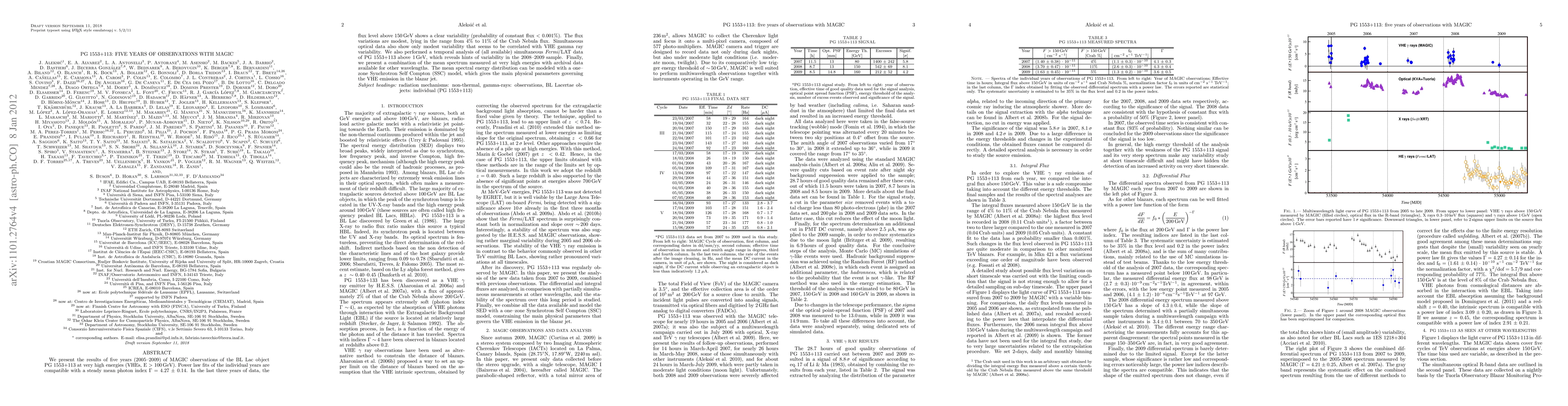 A team of researchers analyzed 5 years of high-energy gamma ray data from blazar PG 1553+113, finding modest variability in the gamma rays above 150 GeV, correlated with optical data.