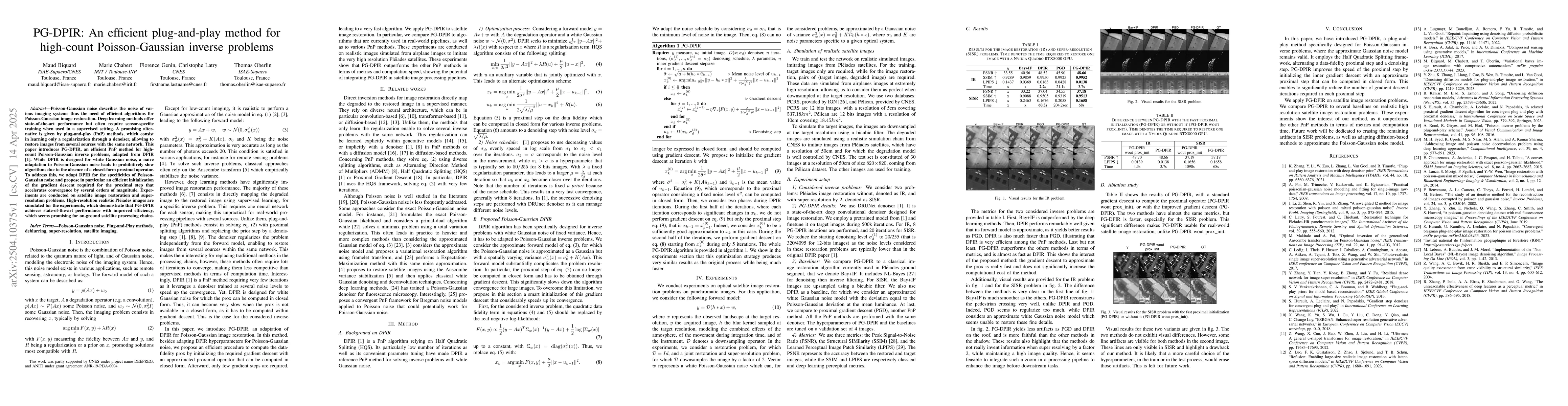This research is significant as it addresses the need for efficient algorithms for Poisson-Gaussian image restoration, which is crucial for various imaging systems. The proposed PG-DPIR method offers a promising solution for real-world applications, such as satellite image processing.