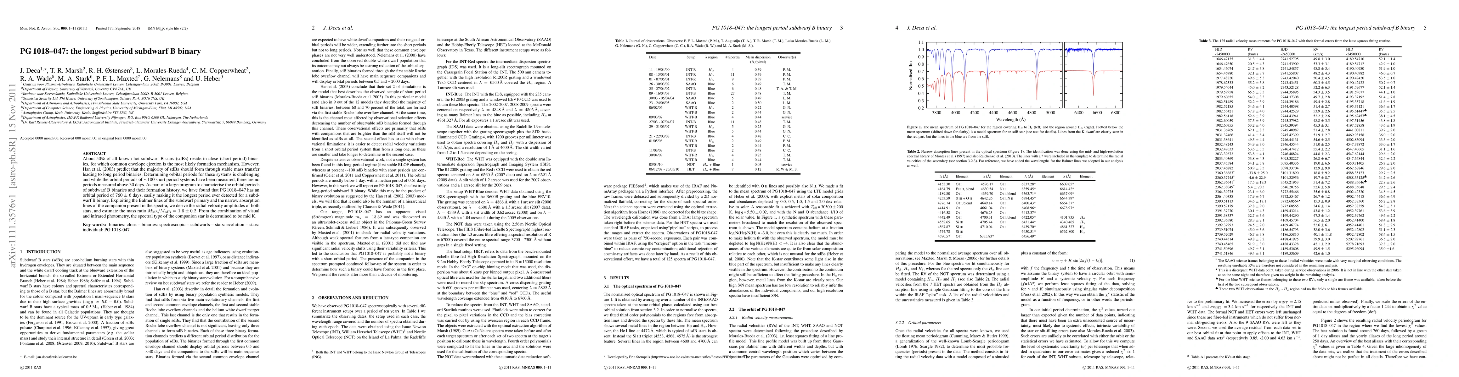 The research identifies PG1018-047 as the longest period subdwarf B binary with an orbital period of 760±6 days, challenging current formation theories. Using spectral analysis, the mass ratio of the system was estimated, and the companion star was determined to be a mid K-type.