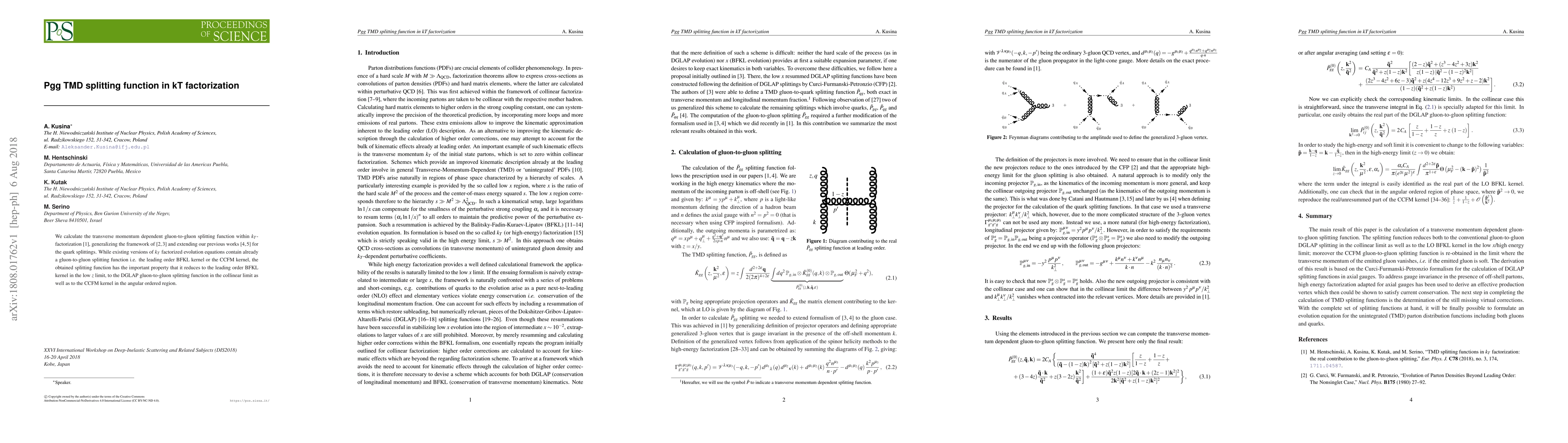 We calculate the transverse momentum dependent gluon-to-gluon splitting function within kT-factorization [EPJC 78 (2018) 174], generalizing the framework of [NPB 175 (1980) 27; NPB 427 (1994) 475] and extending our previous works [JHEP 01 (2016) 181; PRD 94 (2016) 114013] for the quark splittings. While existing versions of kT factorized evolution equations contain already a gluon-to-gluon splitting function i.e. the leading order BFKL kernel or the CCFM kernel, the obtained splitting function has the important property that it reduces to the leading order BFKL kernel in the low z limit, to the DGLAP gluon-to-gluon splitting function in the collinear limit as well as to the CCFM kernel in the angular ordered region.
