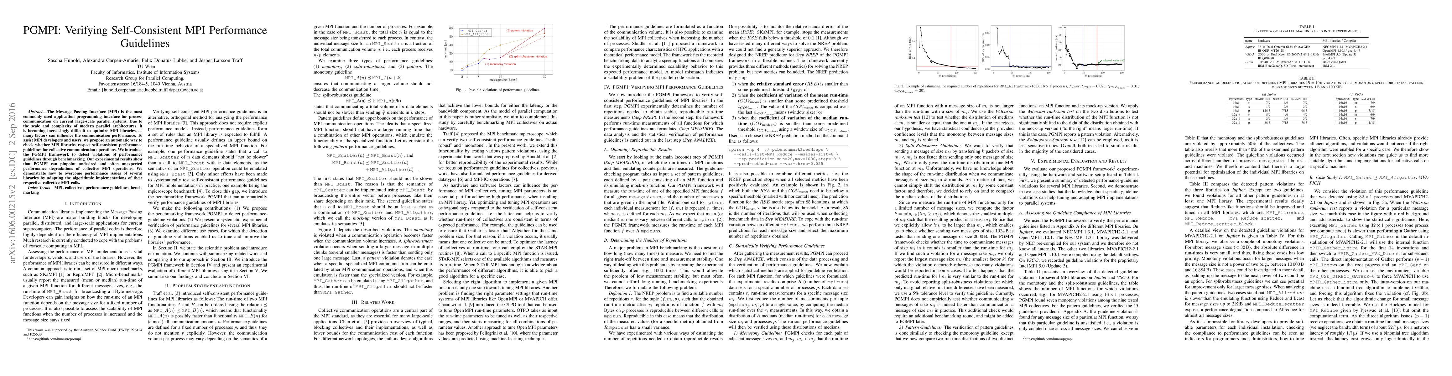 The PGMPI framework automatically verifies if MPI libraries adhere to self-consistent performance guidelines for collective communication operations. Experimental results show that PGMPI effectively identifies and helps resolve performance degradations in collective MPI operations.
