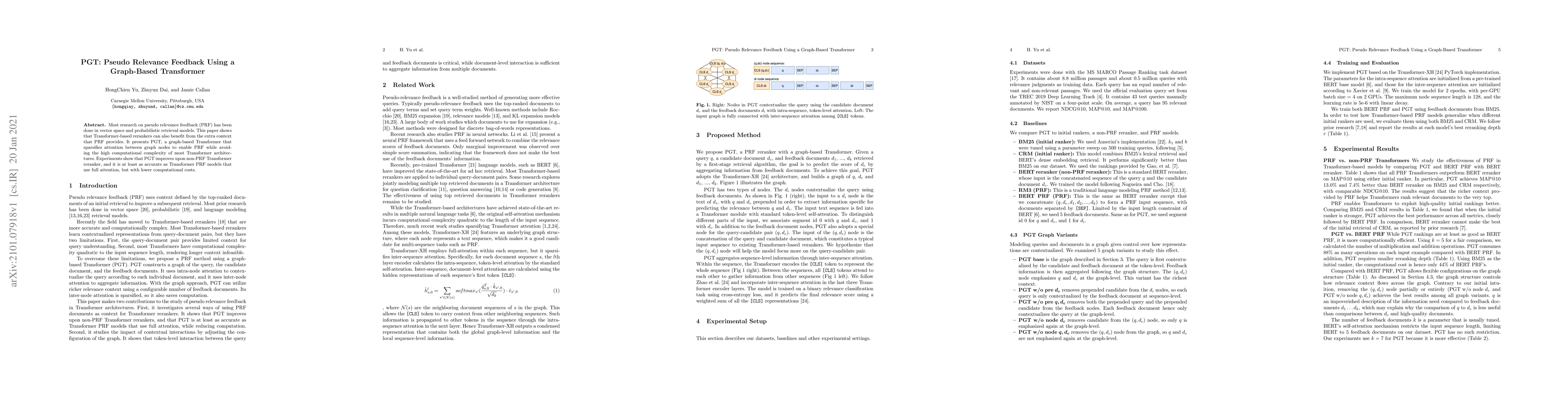 A new Transformer-based reranker called PGT improves upon non-PRF models with lower computational costs while achieving similar accuracy to full attention PRF models.