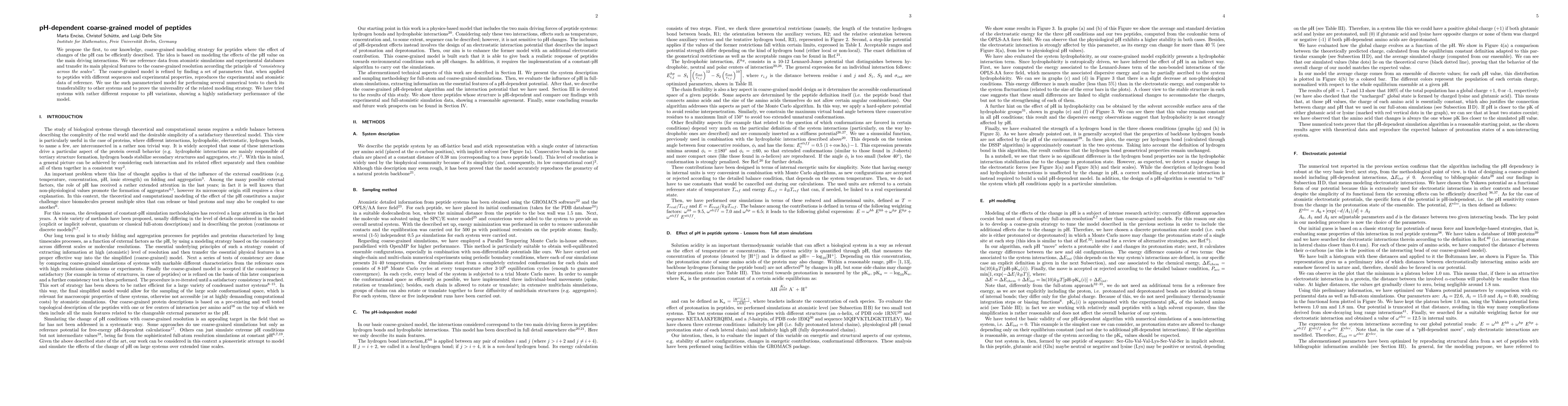 We propose the first, to our knowledge, coarse-grained modeling strategy for peptides where the effect of changes of the pH can be efficiently described. The idea is based on modeling the effects of the pH value on the main driving interactions. We use reference data from atomistic simulations and experimental databases and transfer its main physical features to the coarse-grained resolution according the principle of "consistency across the scales". The coarse-grained model is refined by finding a set of parameters that, when applied to peptides with different sequences and experimental properties, reproduces the experimental and atomistic data of reference. We use the such parameterized model for performing several numerical tests to check its transferability to other systems and to prove the universality of the related modeling strategy. We have tried systems with rather different response to pH variations, showing a highly satisfactory performance of the model.