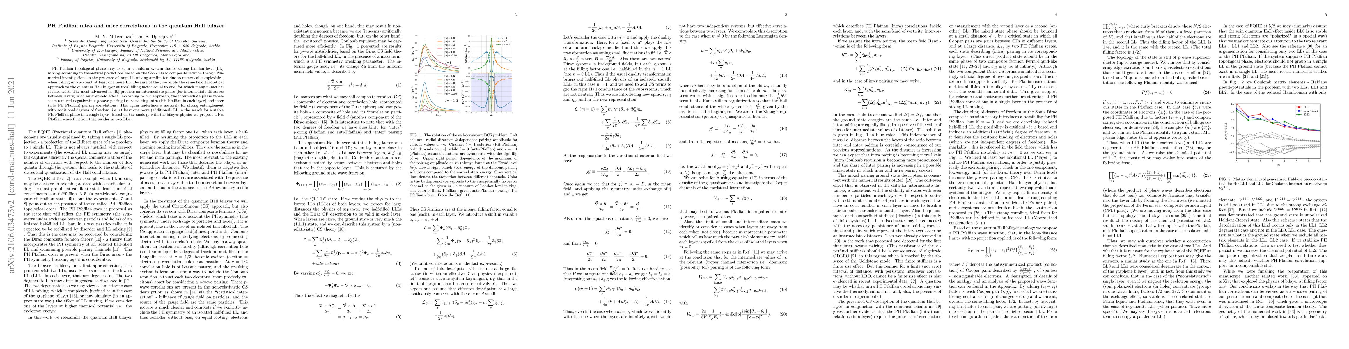 The research proposes a PH Pfaffian topological phase in a single quantum Hall layer, supported by Son-Dirac composite fermion theory. Drawing parallels with bilayer studies, it suggests a wave function residing in two Landau levels, exhibiting mixed intra and inter-layer Pfaffian pairing correlations, highlighting the need for additional LLs to stabilize the PH Pfaffian phase.