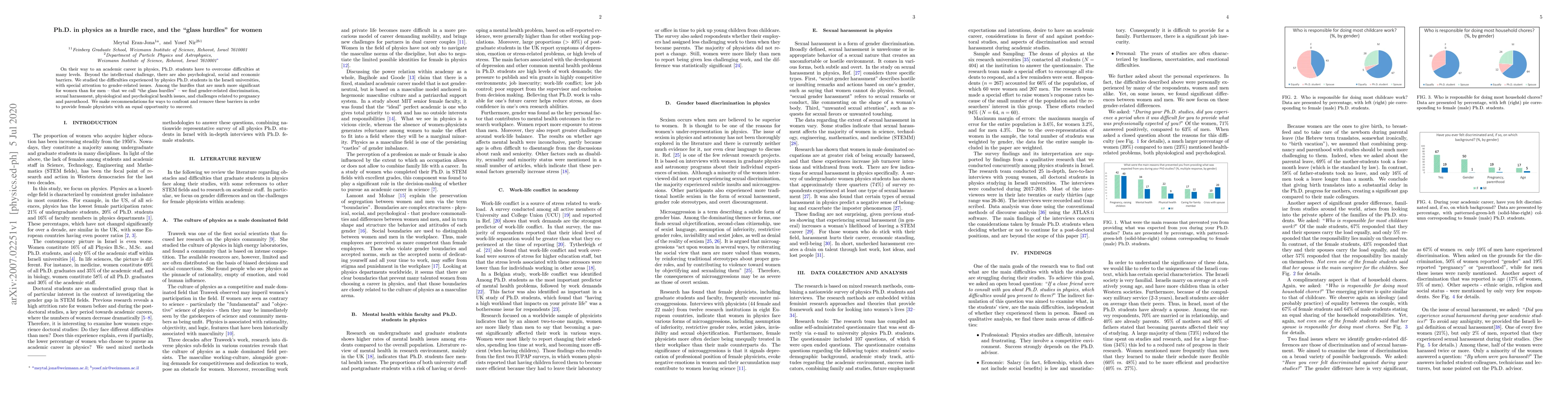 On their way to an academic career in physics, Ph.D. students have to overcome difficulties at many levels. Beyond the intellectual challenge, there are also psychological, social and economic barriers. We studied the difficulties experienced by physics Ph.D. students in the Israeli universities, with special attention to gender-related issues. Among the hurdles that are much more significant for women than for men -- that we call ``the glass hurdles" -- we find gender-related discrimination, sexual harassment, physiological and psychological health issues, and challenges related to pregnancy and parenthood. We make recommendations for ways to confront and remove these barriers in order to provide female physicists with an equal opportunity to succeed.