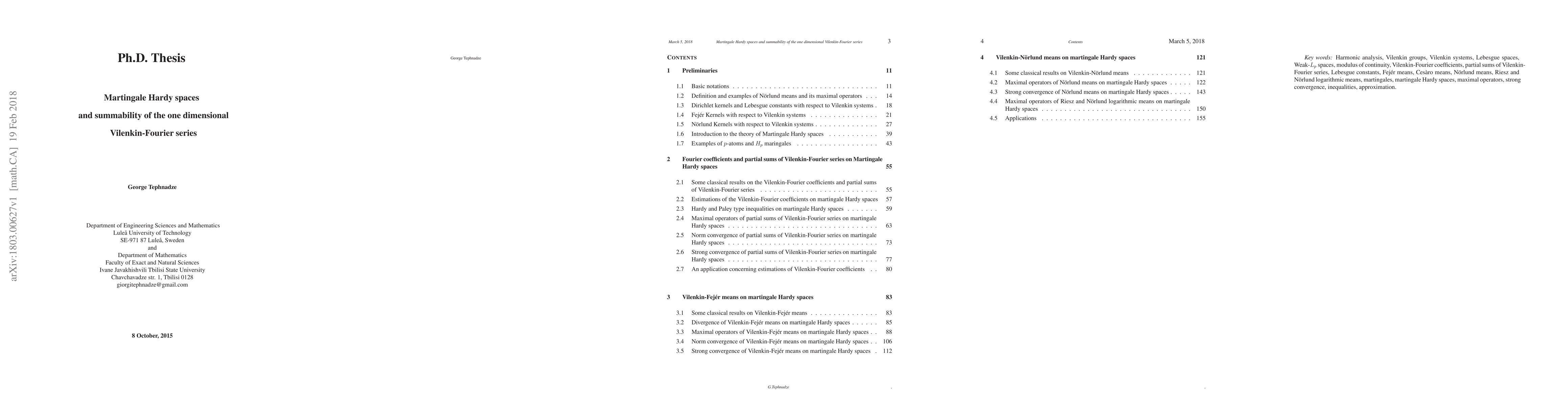 This PhD thesis develops martingale Hardy spaces and explores the summability of one-dimensional Vilenkin-Fourier series, establishing new estimations for Vilenkin-Fourier coefficients and proving results on the boundedness of maximal operators. It also investigates convergence conditions and derives new Hardy type inequalities for the Vilenkin systems.