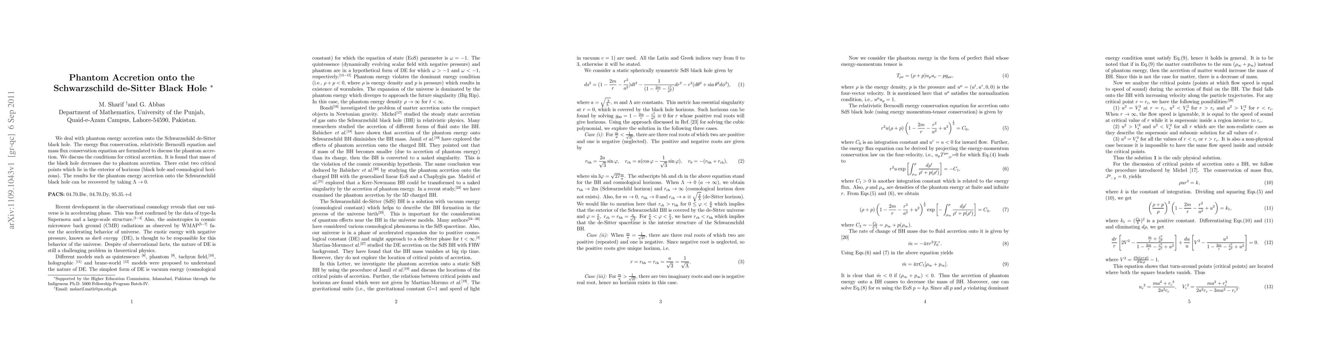 This paper investigates phantom energy accretion onto a Schwarzschild de-Sitter black hole, finding that phantom accretion decreases the black hole's mass. It identifies two critical points outside the horizons and shows that Schwarzschild black hole results are a special case when the cosmological constant approaches zero.