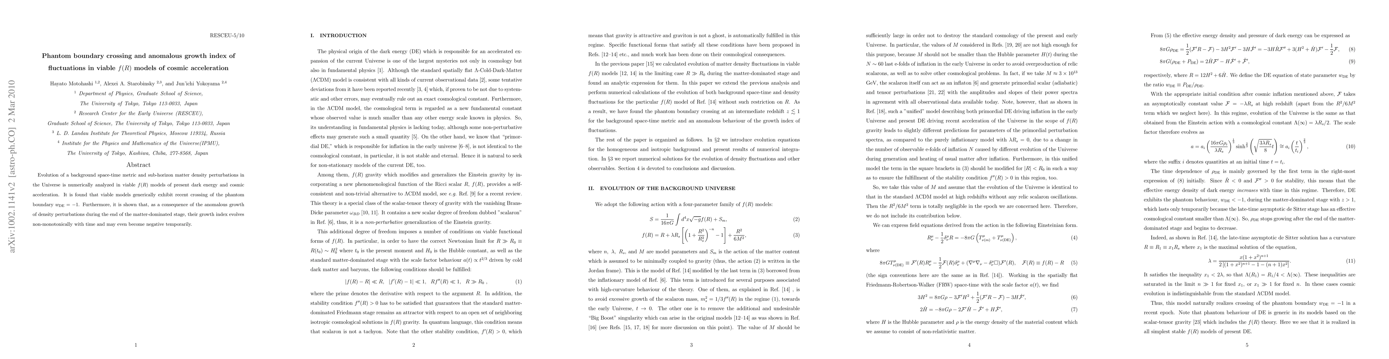 This paper investigates the evolution of cosmic acceleration in viable $f(R)$ models, revealing that these models typically cross the phantom boundary $w_{\rm DE}=-1$. It also demonstrates that density perturbations exhibit anomalous growth, leading to a non-monotonic evolution of their growth index, which can temporarily become negative.