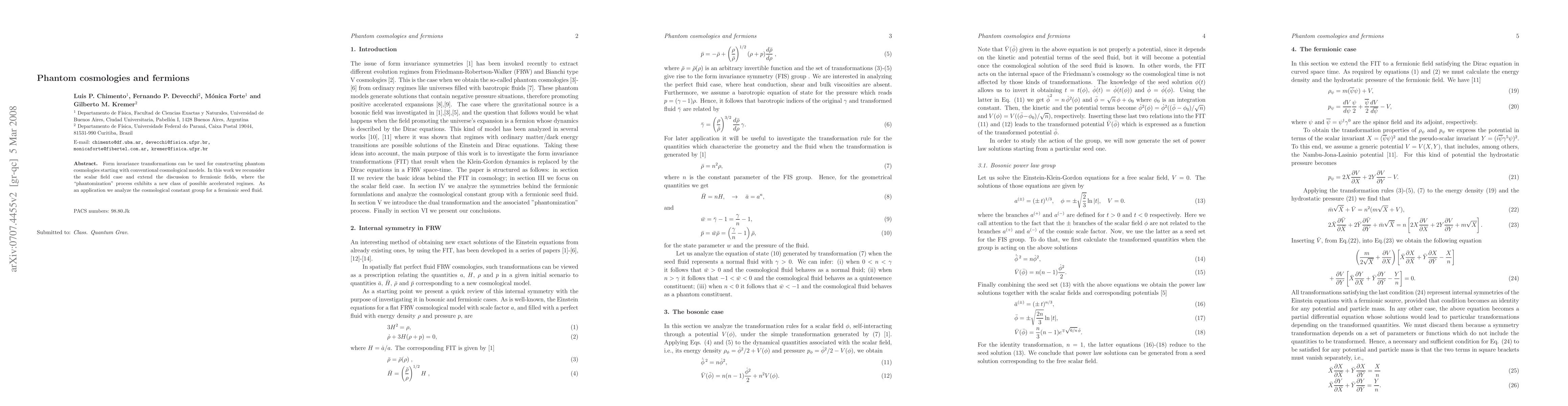 Form invariance transformations can be used for constructing phantom cosmologies starting with conventional cosmological models. In this work we reconsider the scalar field case and extend the discussion to fermionic fields, where the "phantomization" process exhibits a new class of possible accelerated regimes. As an application we analyze the cosmological constant group for a fermionic seed fluid.