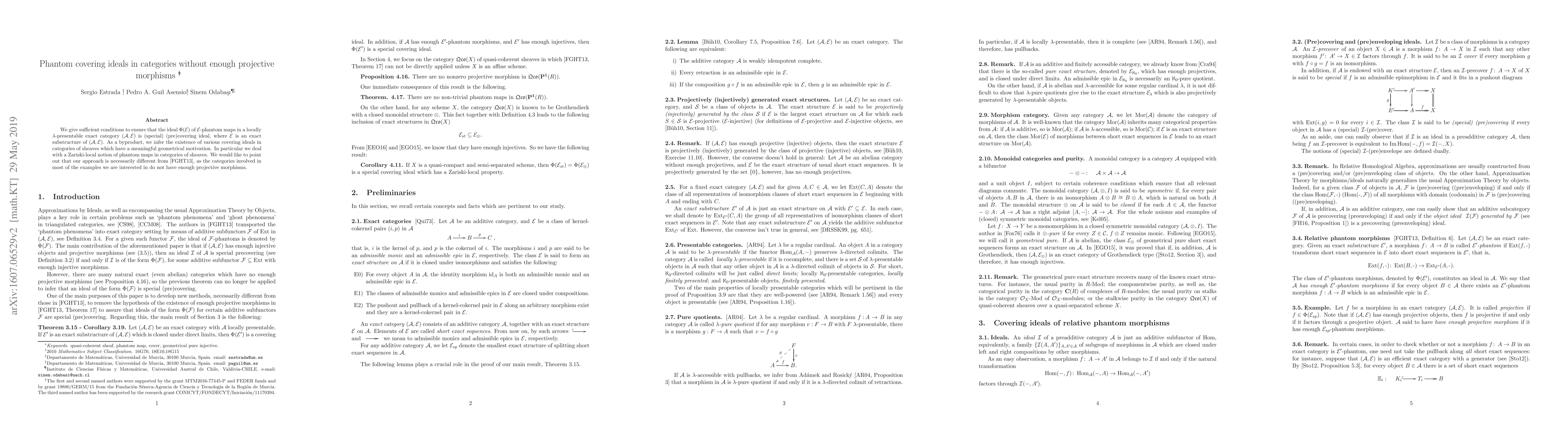 Summary: The paper establishes conditions for $\mathcal{E}$-phantom maps in locally $\lambda$-presentable exact categories to form special covering ideals, especially in categories without enough projective morphisms. It also explores geometric implications in sheaf categories, notably addressing Zariski-local phantom maps.