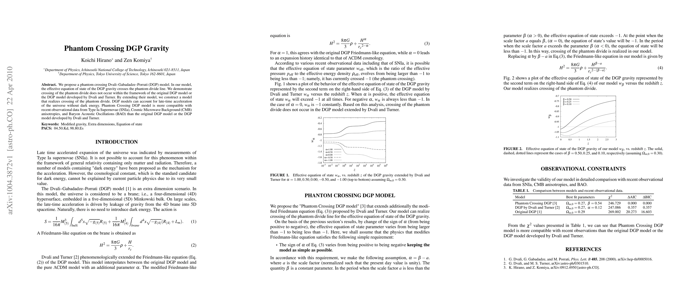 We propose a phantom crossing Dvali--Gabadadze--Porrati (DGP) model. In our model, the effective equation of state of the DGP gravity crosses the phantom divide line. We demonstrate crossing of the phantom divide does not occur within the framework of the original DGP model or the DGP model developed by Dvali and Turner. By extending their model, we construct a model that realizes crossing of the phantom divide. DGP models can account for late-time acceleration of the universe without dark energy. Phantom Crossing DGP model is more compatible with recent observational data from Type Ia Supernovae (SNIa), Cosmic Microwave Background (CMB) anisotropies, and Baryon Acoustic Oscillations (BAO) than the original DGP model or the DGP model developed by Dvali and Turner.