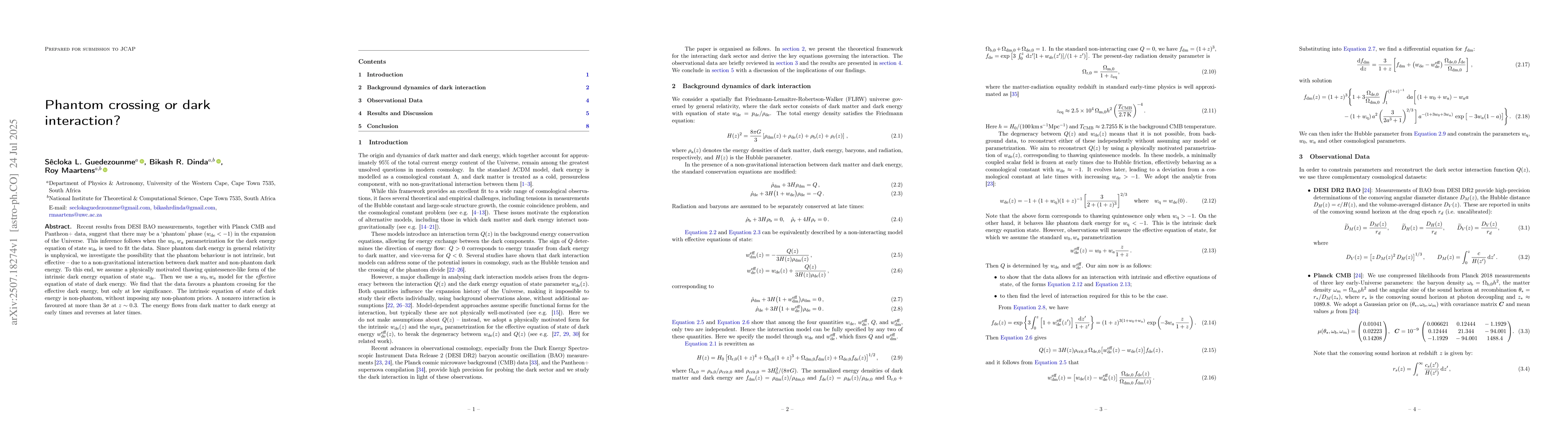 The research suggests a possible 'phantom' phase in universe expansion, implying unphysical dark energy, but finds that this phantom behavior could be an effective result of interaction between dark matter and non-phantom dark energy. The study favors a non-phantom intrinsic dark energy equation of state and a significant dark matter-dark energy interaction at z~0.3.