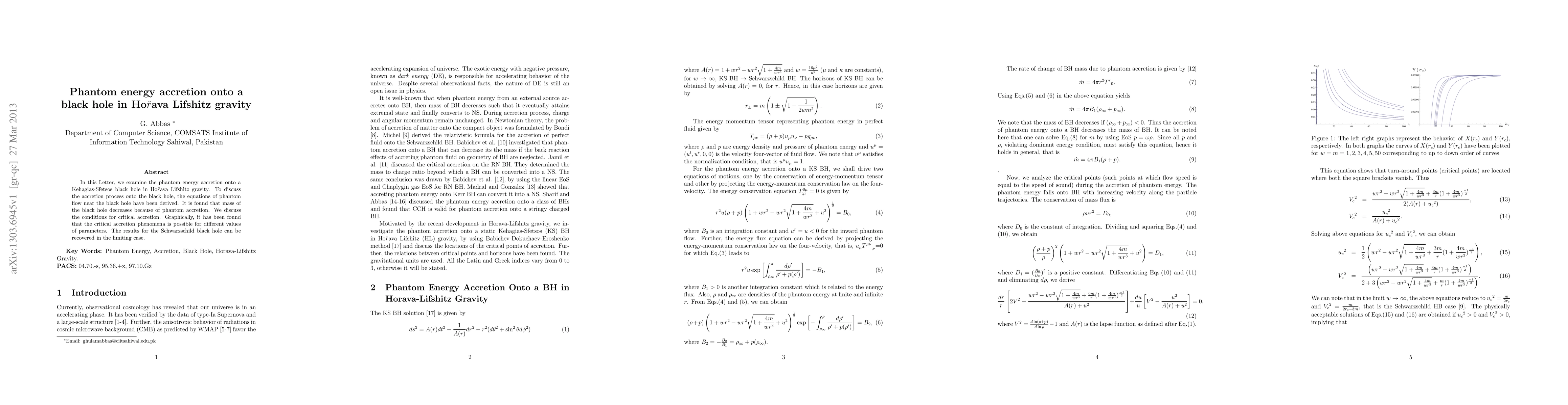 This paper investigates how phantom energy affects a Kehagias-Sfetsos black hole in Horava Lifshitz gravity, finding that phantom accretion decreases the black hole's mass. The study reveals conditions for critical accretion, showing graphically that these phenomena occur under various parameter values, with results for Schwarzschild black holes applicable in the limiting case.
