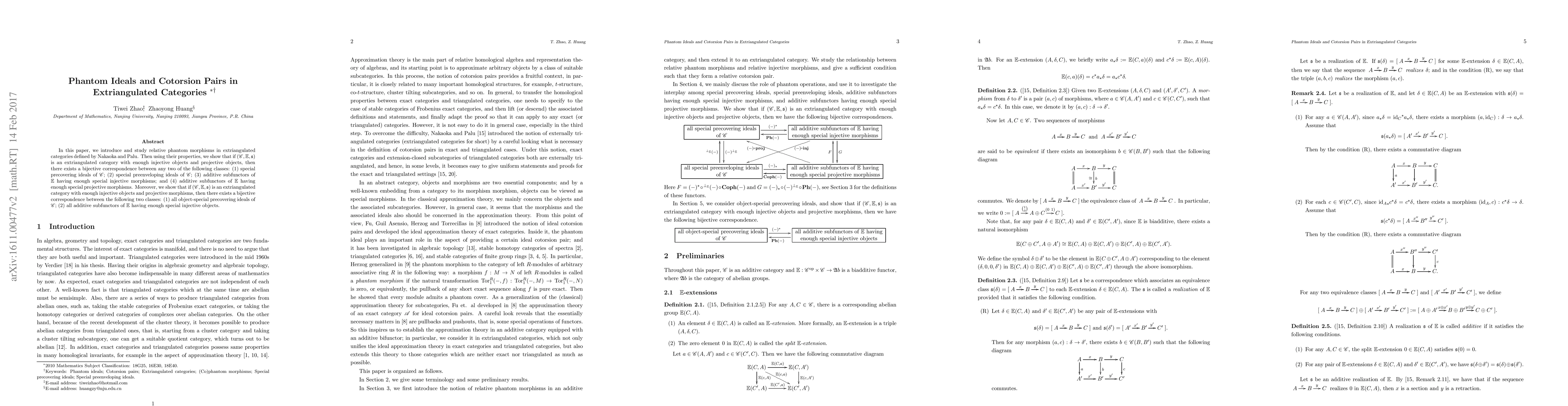 This paper introduces relative phantom morphisms in extriangulated categories and establishes a bijective correspondence between various classes of ideals and subfunctors, demonstrating their equivalence in certain conditions involving injective and projective objects.