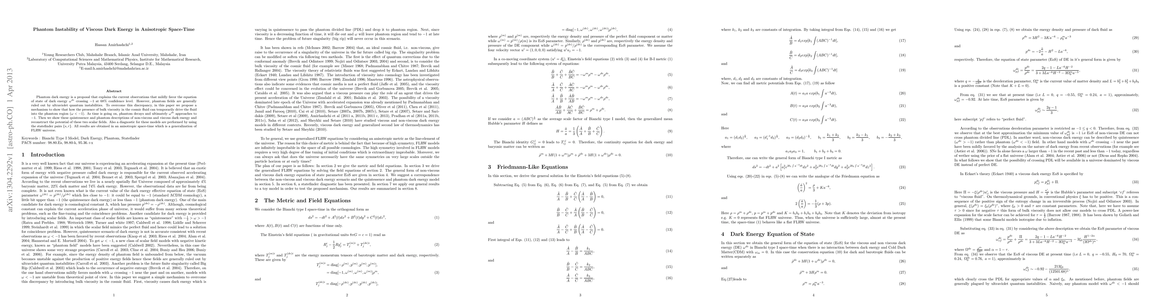 This paper explores the phantom instability of viscous dark energy in anisotropic space-time, proposing a mechanism where bulk viscosity temporarily drives the dark energy into the phantom region ($\omega<-1$), before it decays and approaches $\omega=-1$. The study reconstructs potentials for both viscous and non-viscous dark energy scenarios and uses statefinder pairs $\{s,r\}$ to diagnose these models.