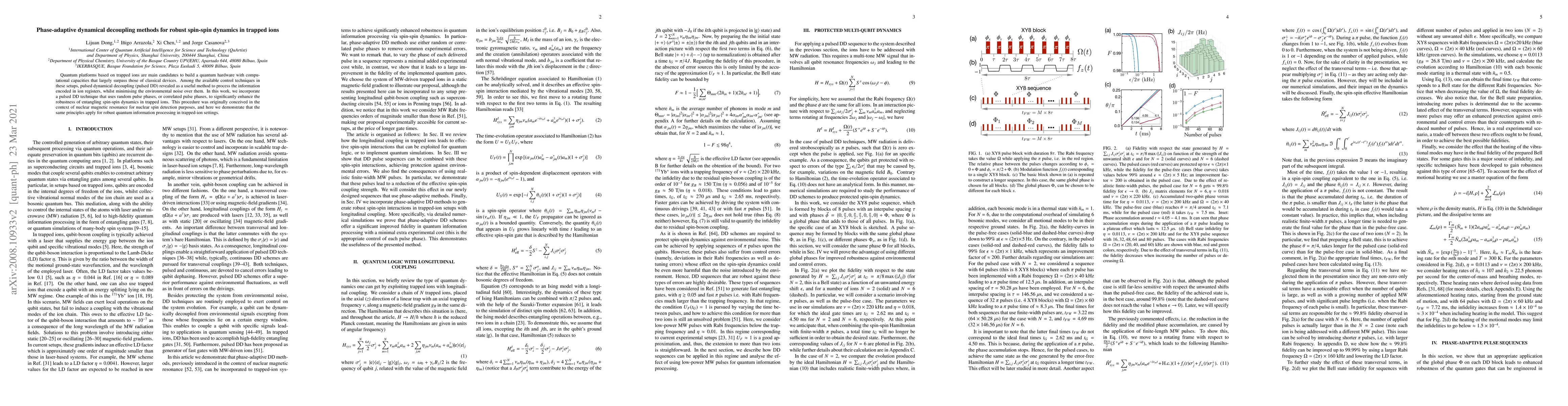 This paper proposes phase-adaptive dynamical decoupling methods using random or correlated pulse phases to enhance the robustness of entangling spin-spin dynamics in trapped ions, extending techniques originally developed for nuclear magnetic resonance to improve quantum information processing in quantum hardware.