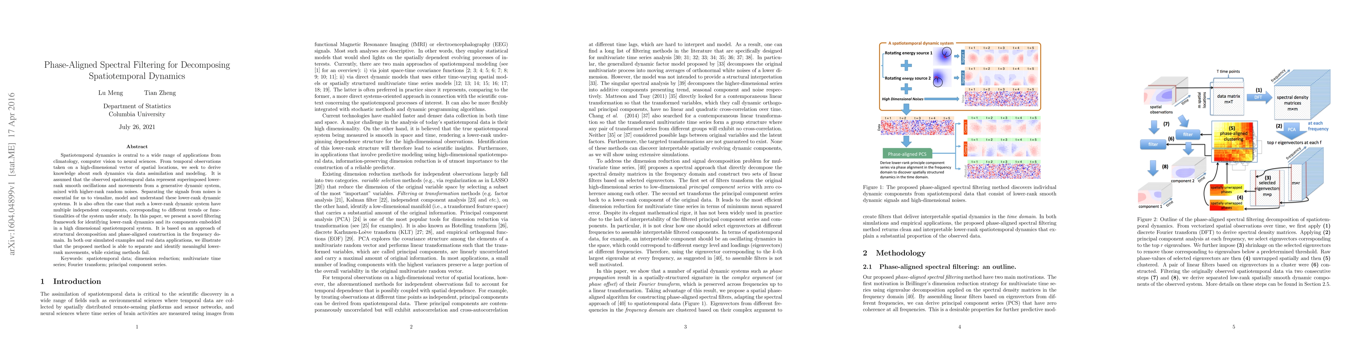 Spatiotemporal dynamics is central to a wide range of applications from climatology, computer vision to neural sciences. From temporal observations taken on a high-dimensional vector of spatial locations, we seek to derive knowledge about such dynamics via data assimilation and modeling. It is assumed that the observed spatiotemporal data represent superimposed lower-rank smooth oscillations and movements from a generative dynamic system, mixed with higher-rank random noises. Separating the signals from noises is essential for us to visualize, model and understand these lower-rank dynamic systems. It is also often the case that such a lower-rank dynamic system have multiple independent components, corresponding to different trends or functionalities of the system under study. In this paper, we present a novel filtering framework for identifying lower-rank dynamics and its components embedded in a high dimensional spatiotemporal system. It is based on an approach of structural decomposition and phase-aligned construction in the frequency domain. In both our simulated examples and real data applications, we illustrate that the proposed method is able to separate and identify meaningful lower-rank movements, while existing methods fail.