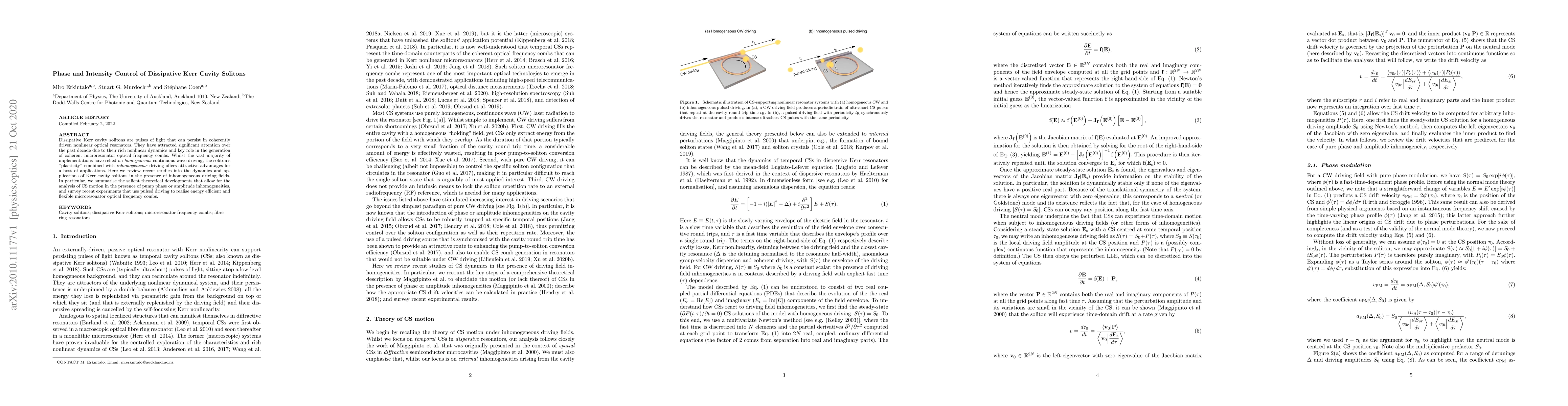 This paper reviews advancements in understanding and manipulating dissipative Kerr cavity solitons under inhomogeneous driving, highlighting theoretical frameworks for analyzing soliton motion with pump phase or amplitude variations, and surveying experimental implementations using pulsed driving for efficient optical frequency comb generation.