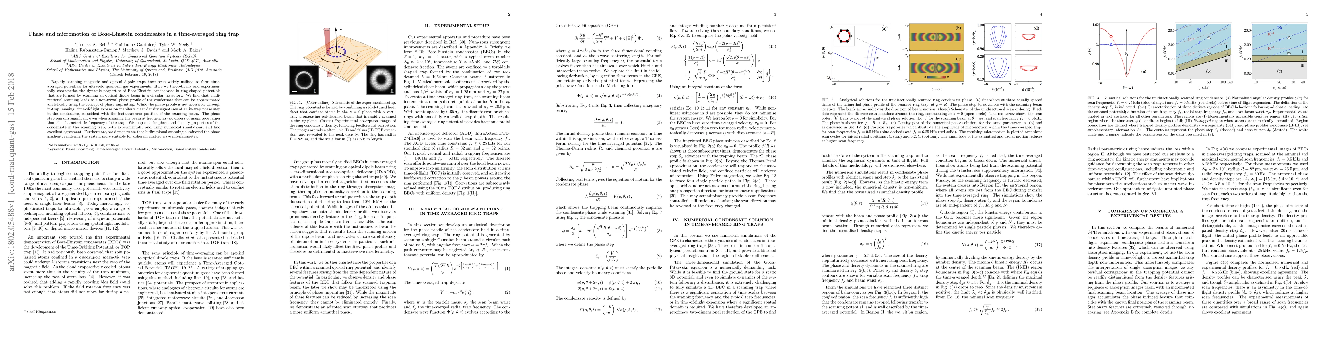 This paper investigates the dynamic properties of Bose-Einstein condensates in a ring trap formed by scanning an optical dipole beam. The study reveals a non-trivial phase profile due to unidirectional scanning, which is analytically approximated and observed through density signatures in time-of-flight expansion. Bidirectional scanning eliminates the phase gradient, enhancing the system for coherent matter wave interferometry.