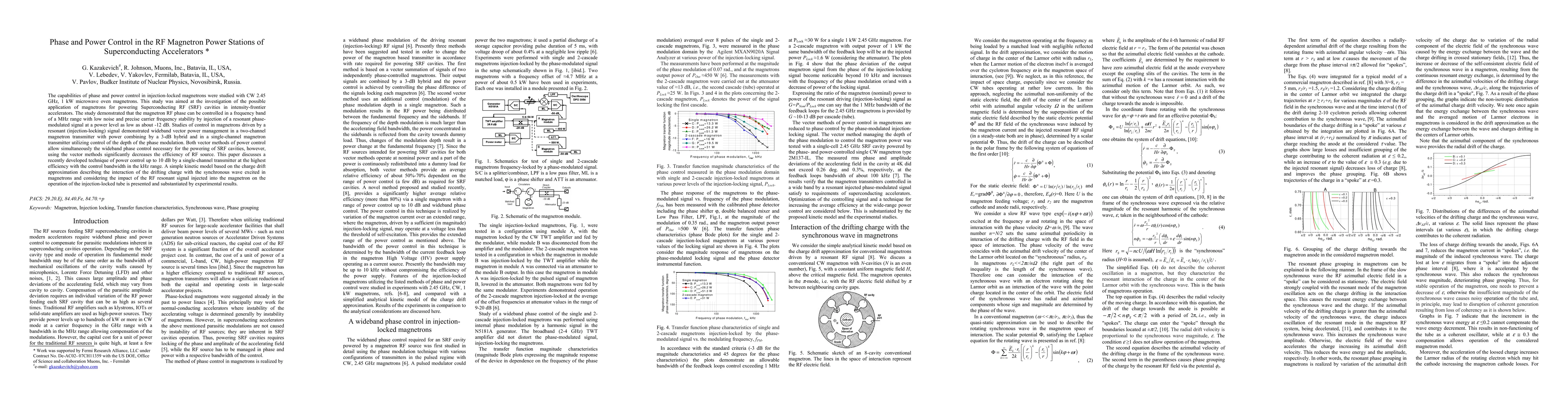 This paper explores phase and power control methods for magnetron RF sources in superconducting accelerators using a simplified kinetic model. Experimental verification confirms the model's predictions of stable, low-noise operation, wide power control range, and wide-band phase control, demonstrating the magnetron's efficiency and suitability for state-of-the-art accelerators.