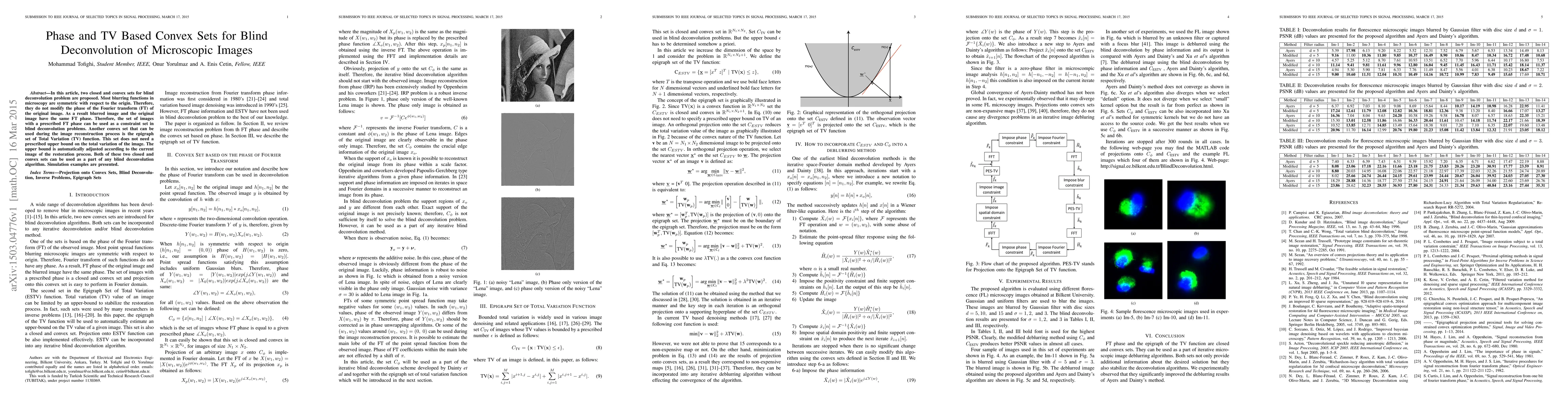 This paper proposes two convex sets—one based on the phase of the Fourier transform and the other on the epigraph of the Total Variation function—to enhance blind deconvolution of microscopic images. These sets provide constraints that adjust dynamically during the reconstruction process, improving image restoration without requiring a fixed upper bound on total variation.
