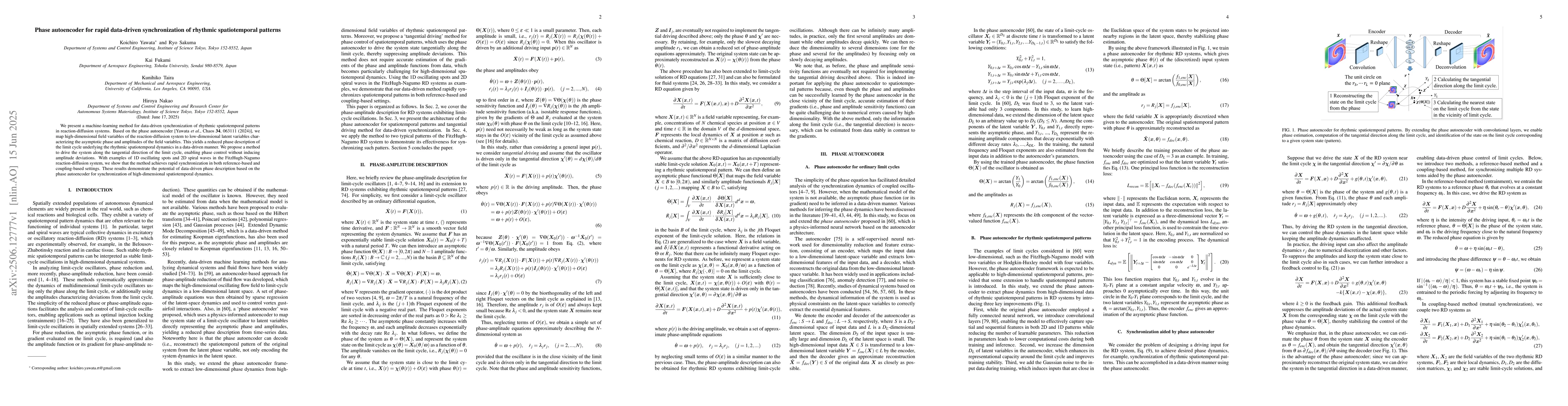 We present a machine-learning method for data-driven synchronization of rhythmic spatiotemporal patterns in reaction-diffusion systems. Based on the phase autoencoder [Yawata {\it et al.}, Chaos {\bf 34}, 063111 (2024)], we map high-dimensional field variables of the reaction-diffusion system to low-dimensional latent variables characterizing the asymptotic phase and amplitudes of the field variables. This yields a reduced phase description of the limit cycle underlying the rhythmic spatiotemporal dynamics in a data-driven manner. We propose a method to drive the system along the tangential direction of the limit cycle, enabling phase control without inducing amplitude deviations. With examples of 1D oscillating spots and 2D spiral waves in the FitzHugh-Nagumo reaction-diffusion system, we show that the method achieves rapid synchronization in both reference-based and coupling-based settings. These results demonstrate the potential of data-driven phase description based on the phase autoencoder for synchronization of high-dimensional spatiotemporal dynamics.