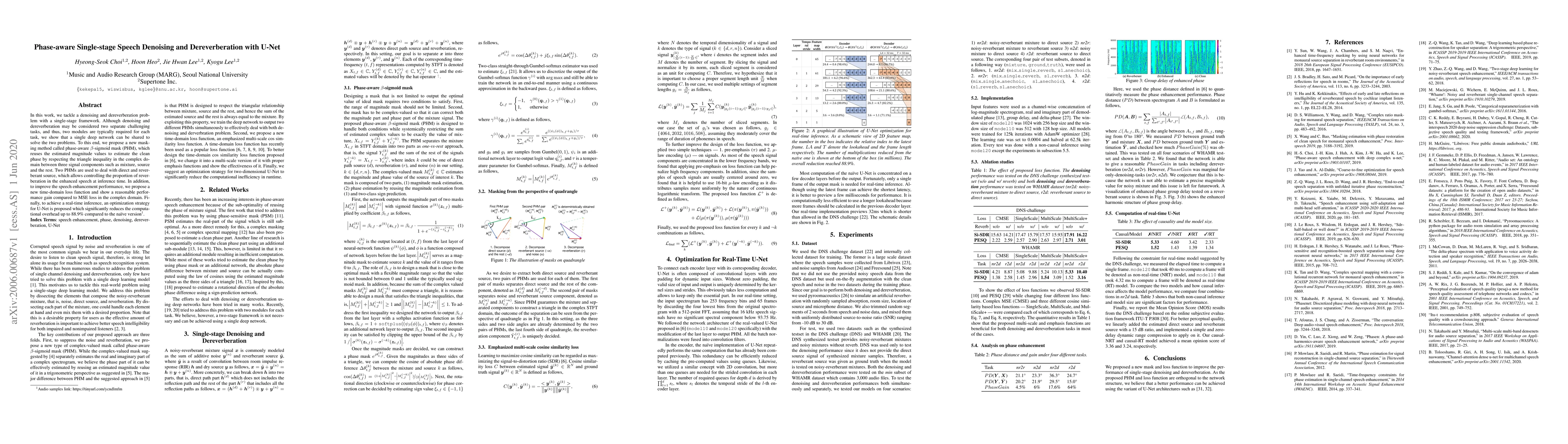 This paper proposes a single-stage deep network using U-Net for simultaneous speech denoising and dereverberation. It introduces a phase-aware beta-sigmoid mask (PHM) to estimate the clean phase and a new time-domain loss function for better performance, achieving up to 88.9% reduction in computational overhead.