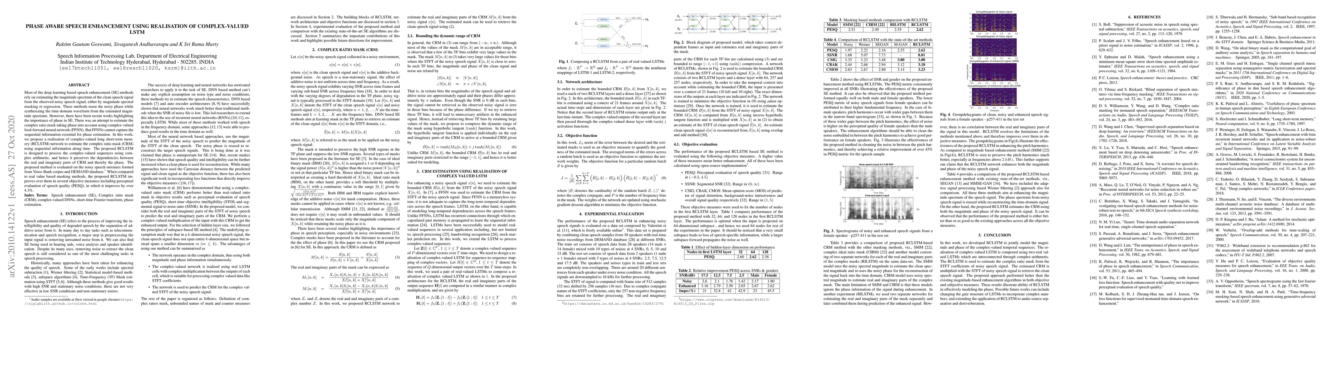 Researchers propose a novel method for speech enhancement using complex-valued LSTM to estimate phase-aware masks, leading to improved speech quality by over 4.3% compared to existing methods.