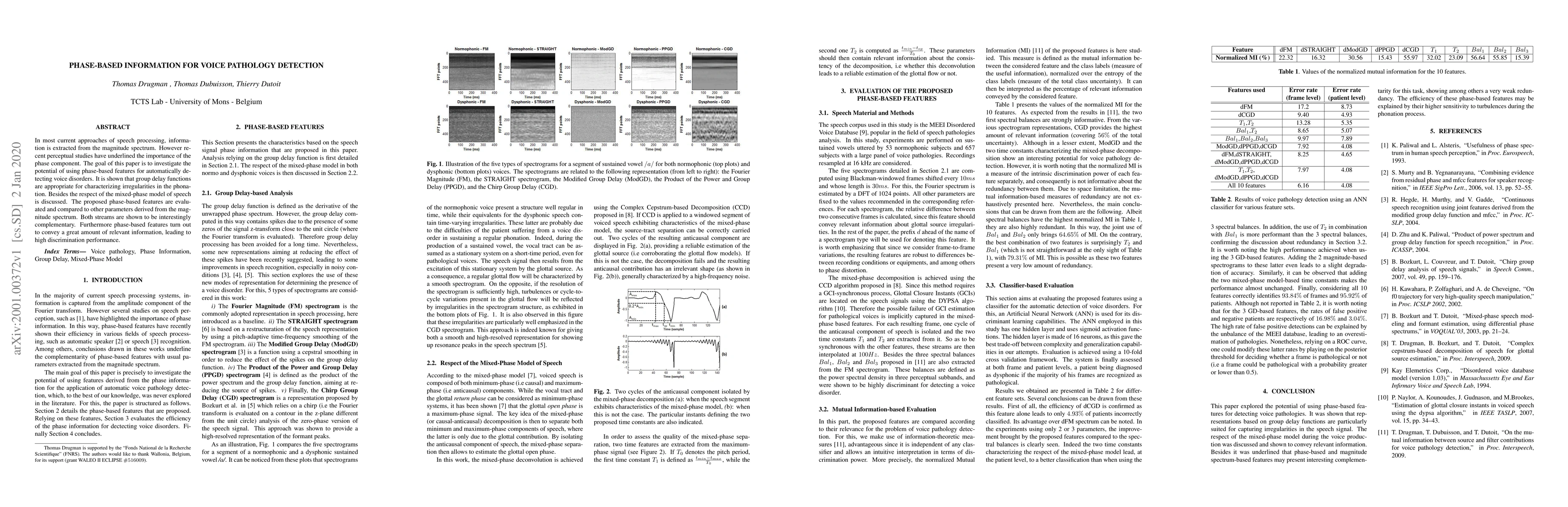 It proposes group delay functions as a way to characterize phonation irregularities and shows that phase-based features complement those derived from magnitude spectra.