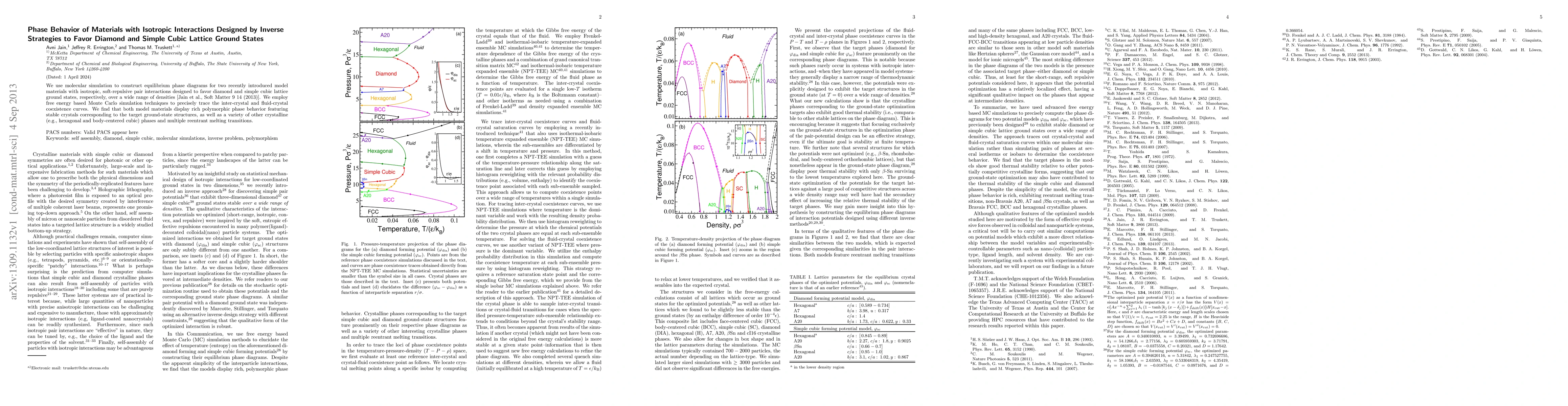 This paper uses molecular simulations to explore the phase behavior of two model materials with isotropic interactions designed to favor diamond and simple cubic lattices. The study reveals rich polymorphic phase behavior, including stable target crystals and multiple reentrant melting transitions.