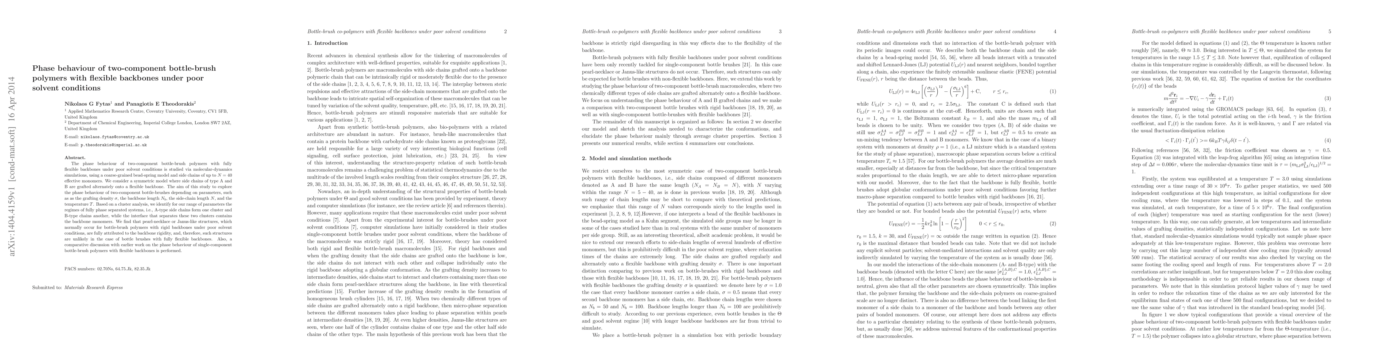 This study investigates the phase behaviour of two-component bottle-brush polymers with flexible backbones under poor solvent conditions using molecular-dynamics simulations. The results show that unlike rigid-backbone counterparts, flexible-backbone bottle brushes do not form pearl-necklace or Janus structures, and instead exhibit fully phase-separated clusters.