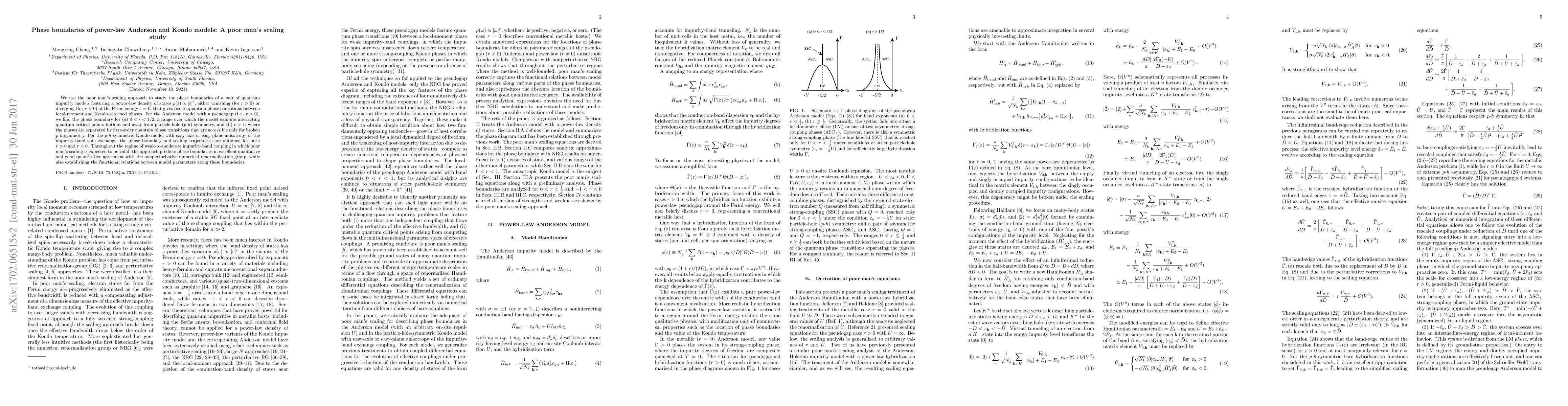 This paper investigates the phase boundaries of the pseudogap Anderson and Kondo quantum impurity models using poor man's scaling. It identifies critical points and first-order transitions for different power-law densities of states, comparing results with numerical renormalization group methods.