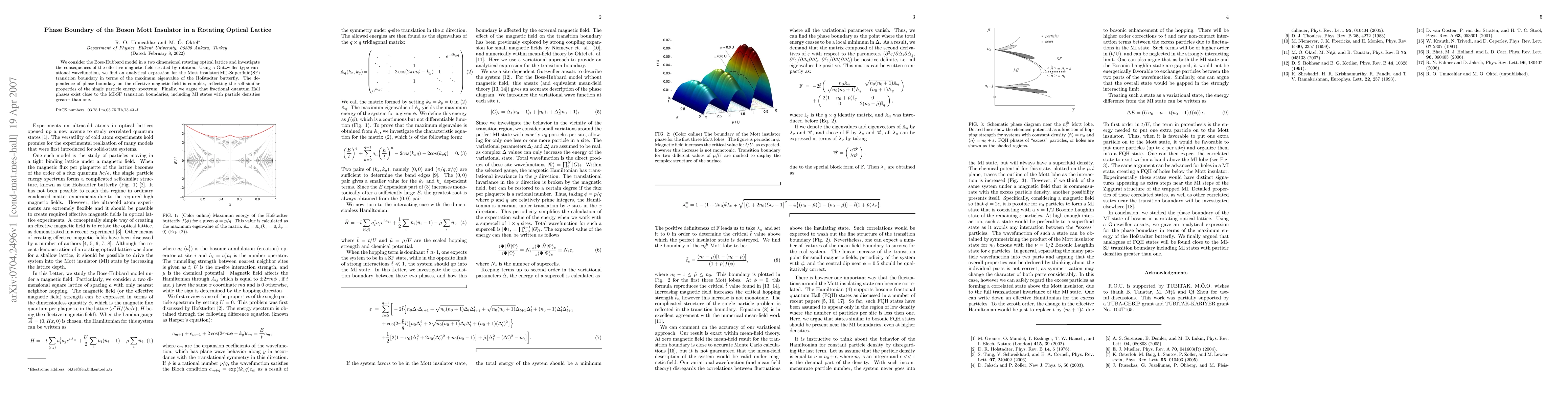 This paper investigates the phase boundary of the boson Mott insulator in a rotating optical lattice, deriving an analytical expression for the Mott insulator-superfluid transition using a Gutzwiller variational wavefunction. It reveals a complex dependence of the phase boundary on the effective magnetic field, suggesting the existence of fractional quantum Hall phases near the transition boundaries.
