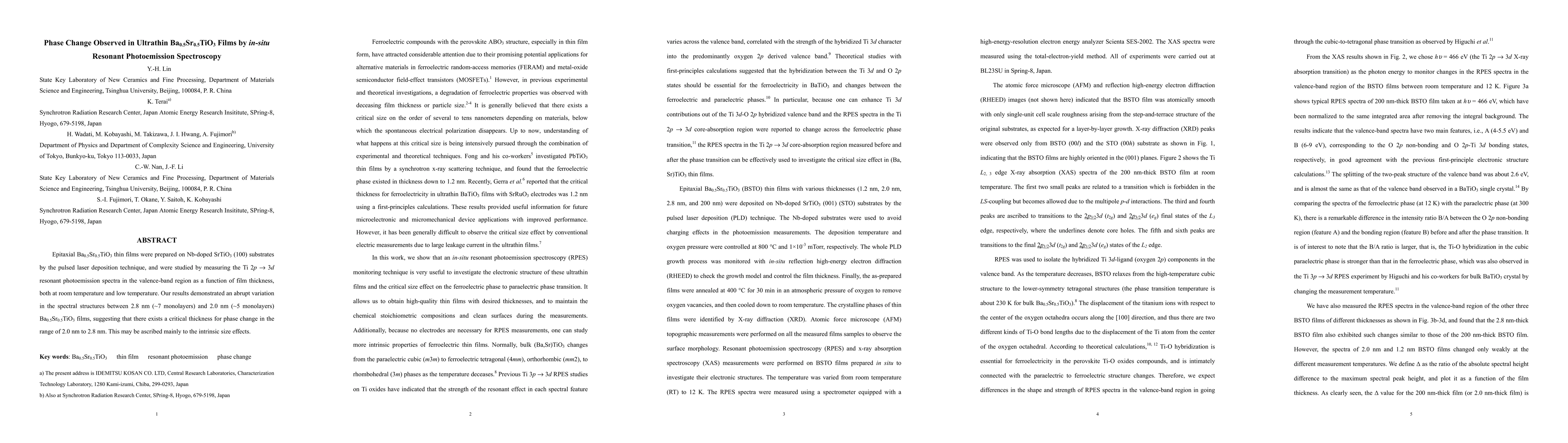 Researchers discovered a critical thickness range of 2.0-2.8 nm for ultrathin Ba0.5Sr0.5TiO3 films to exhibit phase change, as observed through resonant photoemission spectroscopy.