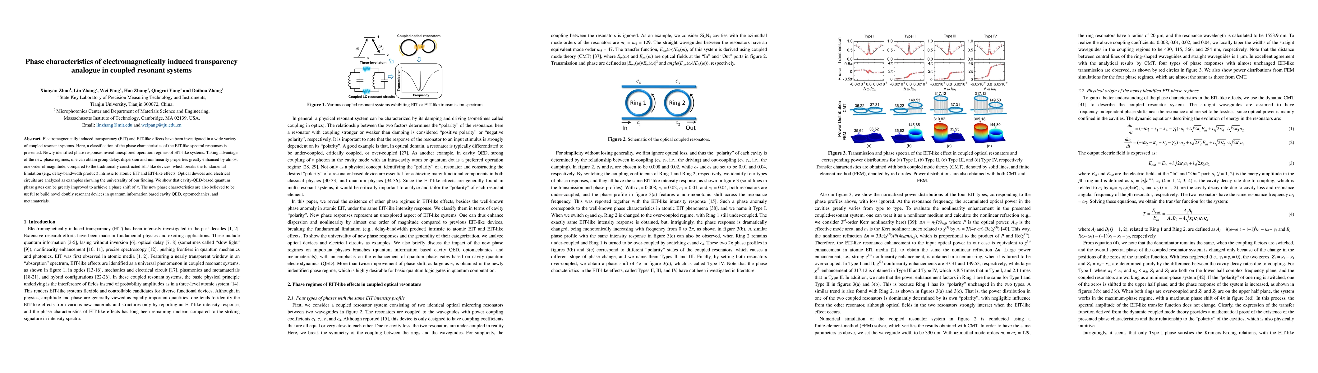 Electromagnetically induced transparency (EIT) and EIT-like effects have been investigated in a wide variety of coupled resonant systems. Here, a classification of the phase characteristics of the EIT-like spectral responses is presented. Newly identified phase responses reveal unexplored operation regimes of EIT-like systems. Taking advantage of the new phase regimes, one can obtain group delay, dispersion and nonlinearity properties greatly enhanced by almost one order of magnitude, compared to the traditionally constructed EIT-like devices, which breaks the fundamental limitation (e.g., delay-bandwidth product) intrinsic to atomic EIT and EIT-like effects. Optical devices and electrical circuits are analyzed as examples showing the universality of our finding. We show that cavity-QED-based quantum phase gates can be greatly improved to achieve a phase shift of {\pi}. The new phase characteristics are also believed to be useful to build novel doubly resonant devices in quantum information based on cavity QED, optomechanics, and metamaterials.