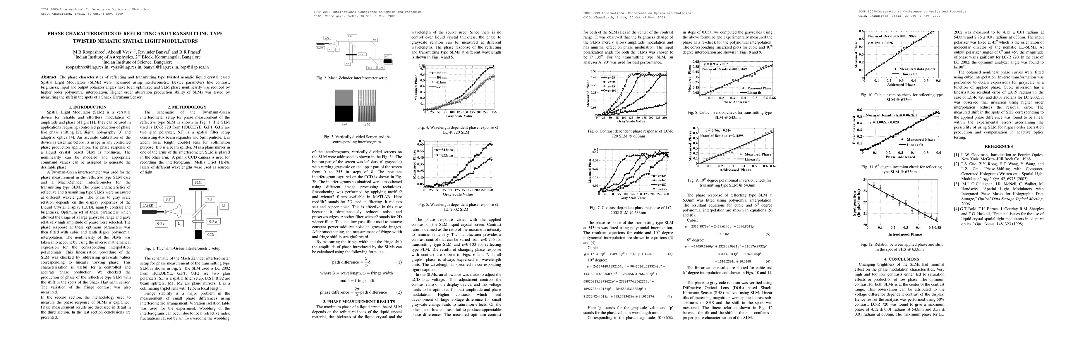 This study measures the phase characteristics of twisted nematic liquid crystal-based Spatial Light Modulators (SLMs) using interferometry, optimizing device parameters to enhance performance and reduce phase nonlinearity through higher order polynomial interpolation. The research also examines the higher order aberration production ability of these SLMs via a Shack Hartmann Sensor.