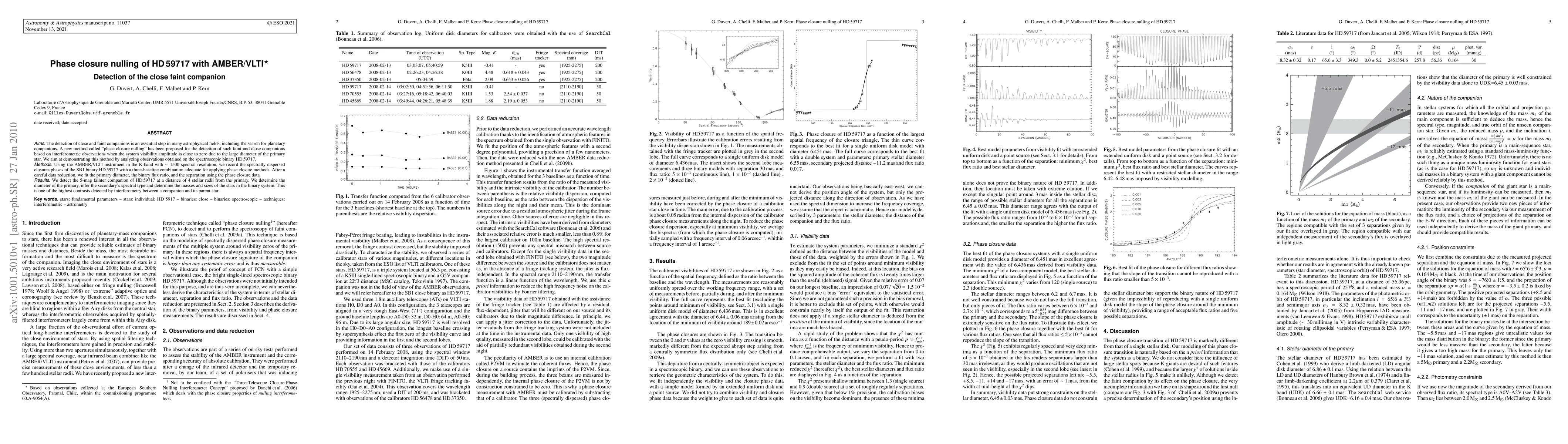 The paper introduces and validates the phase closure nulling technique for detecting close, faint companions using interferometric observations with AMBER/VLTI.
